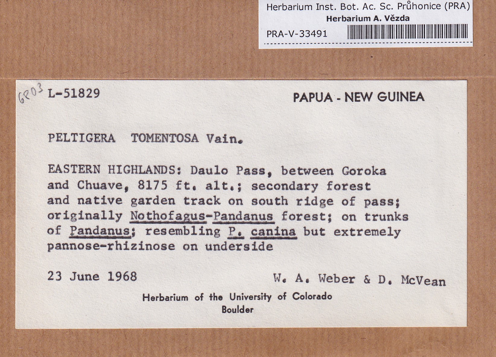 - Deposited in parcel no. 163 Peltigera