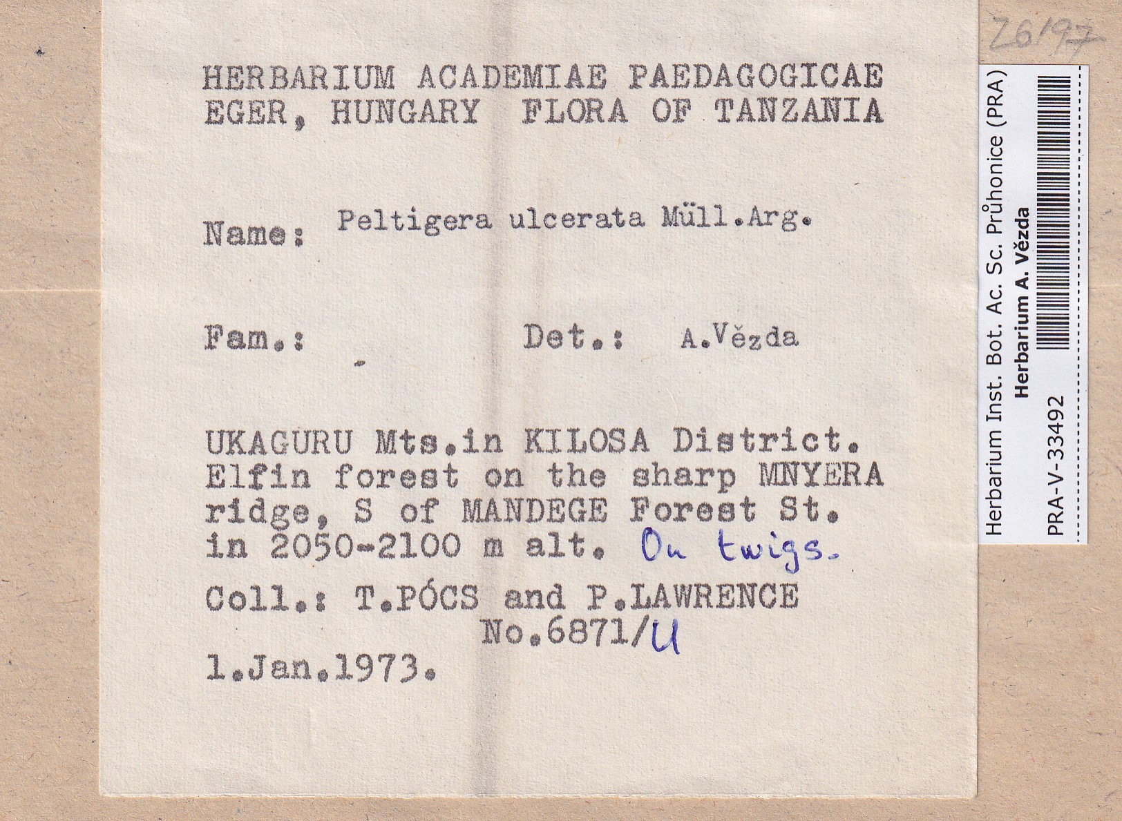- Deposited in parcel no. 163 Peltigera