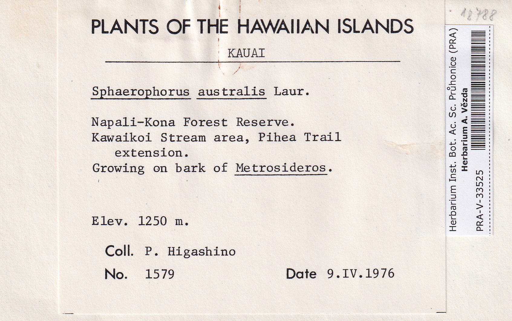 - Kauai Is., Na Pali-Kona Forest Reserve, Kawaikoi Stream area, Pihea Trail extension