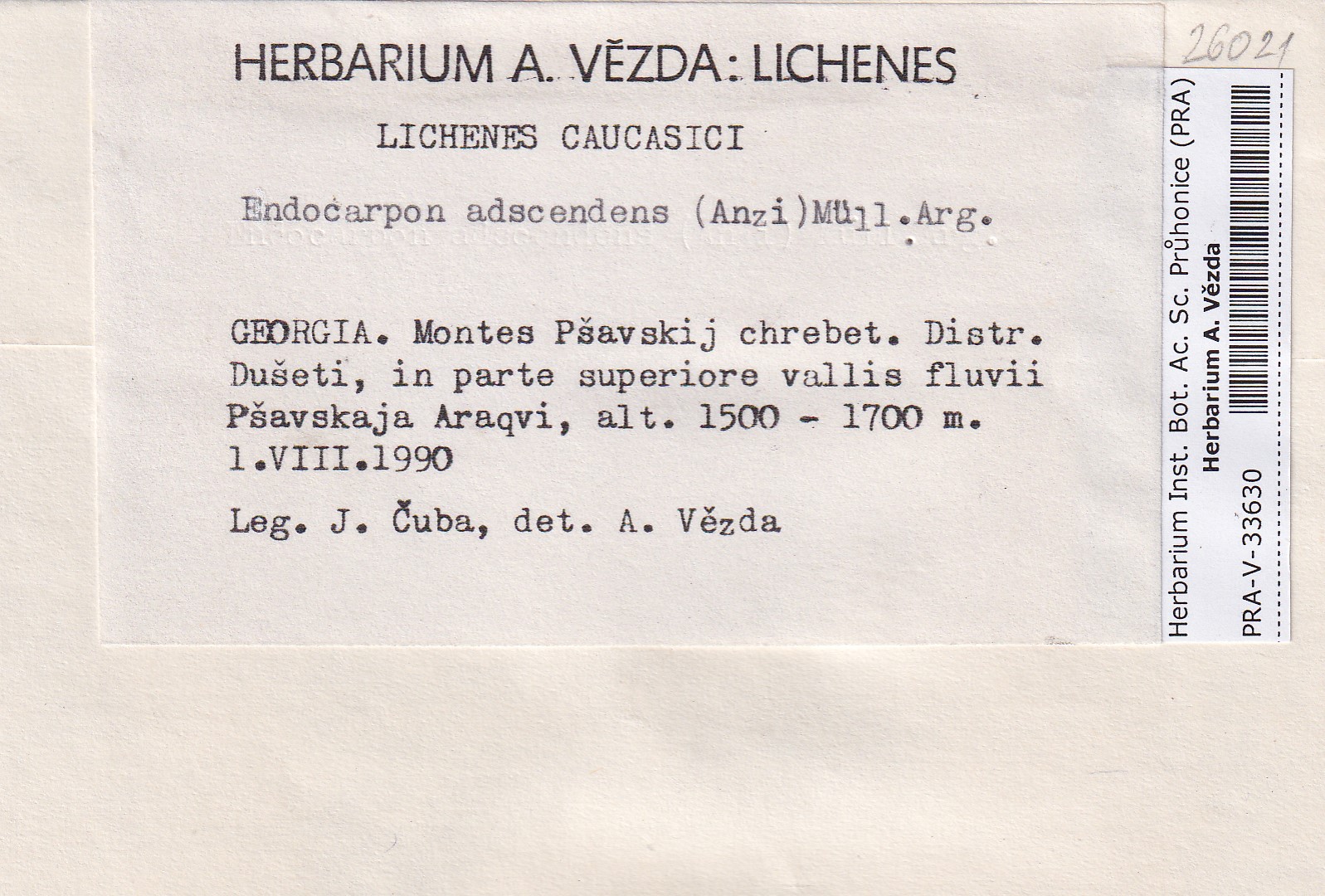 - Deposited in parcel no. 169 Endocarpon, Pyrenothamniam, Staurothele, Trimmatothele