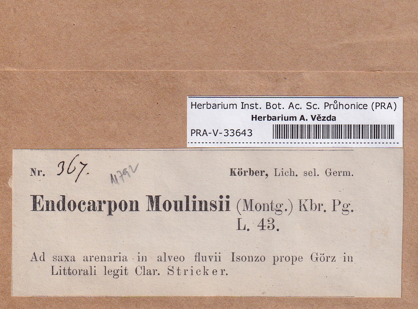 - Deposited in parcel no. 169 Endocarpon, Pyrenothamniam, Staurothele, Trimmatothele