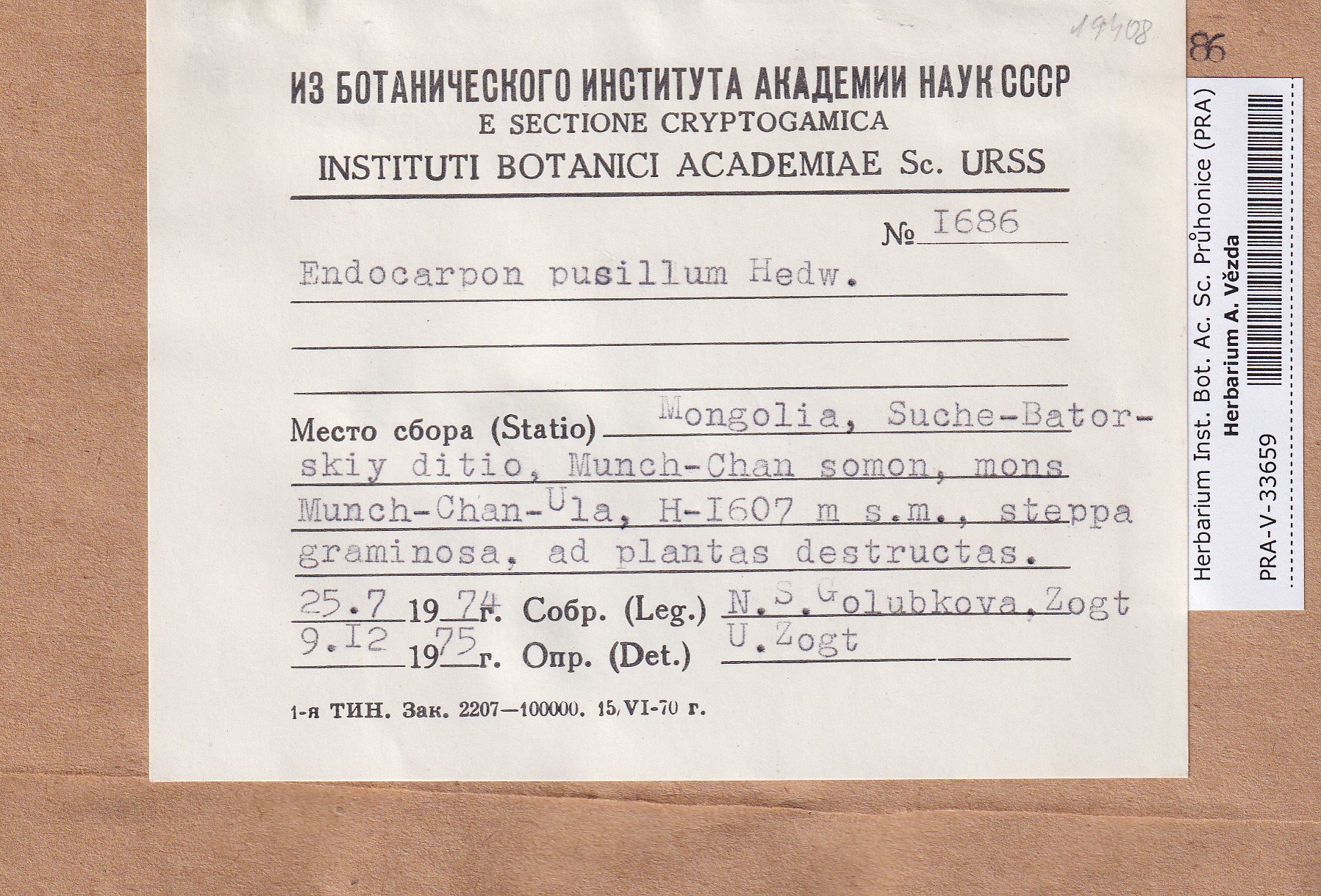 - Deposited in parcel no. 169 Endocarpon, Pyrenothamnia, Staurothele, Trimmatothele