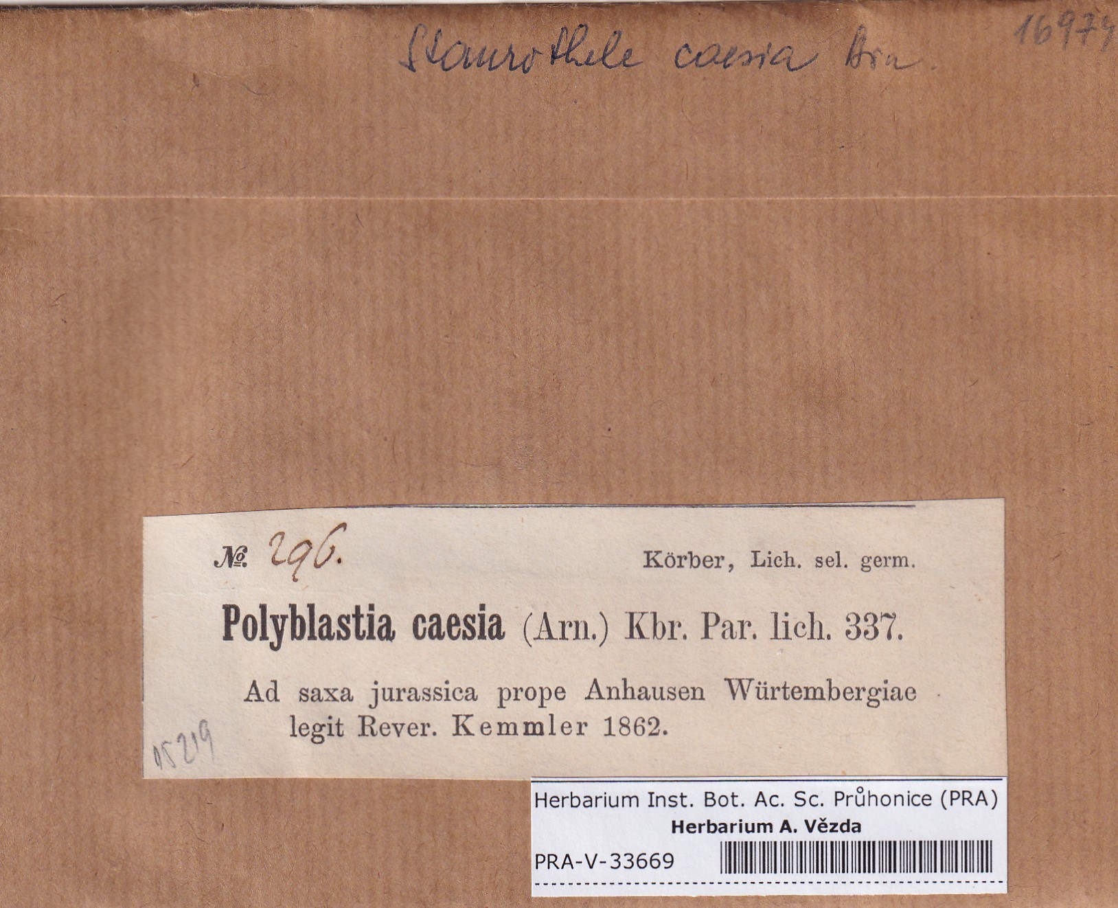 - Deposited in parcel no. 169 Endocarpon, Pyrenothamnia, Staurothele, Trimmatothele