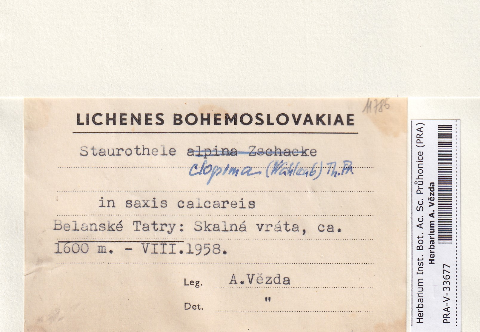 - Deposited in parcel no. 169 Endocarpon, Pyrenothamnia, Staurothele, Trimmatothele