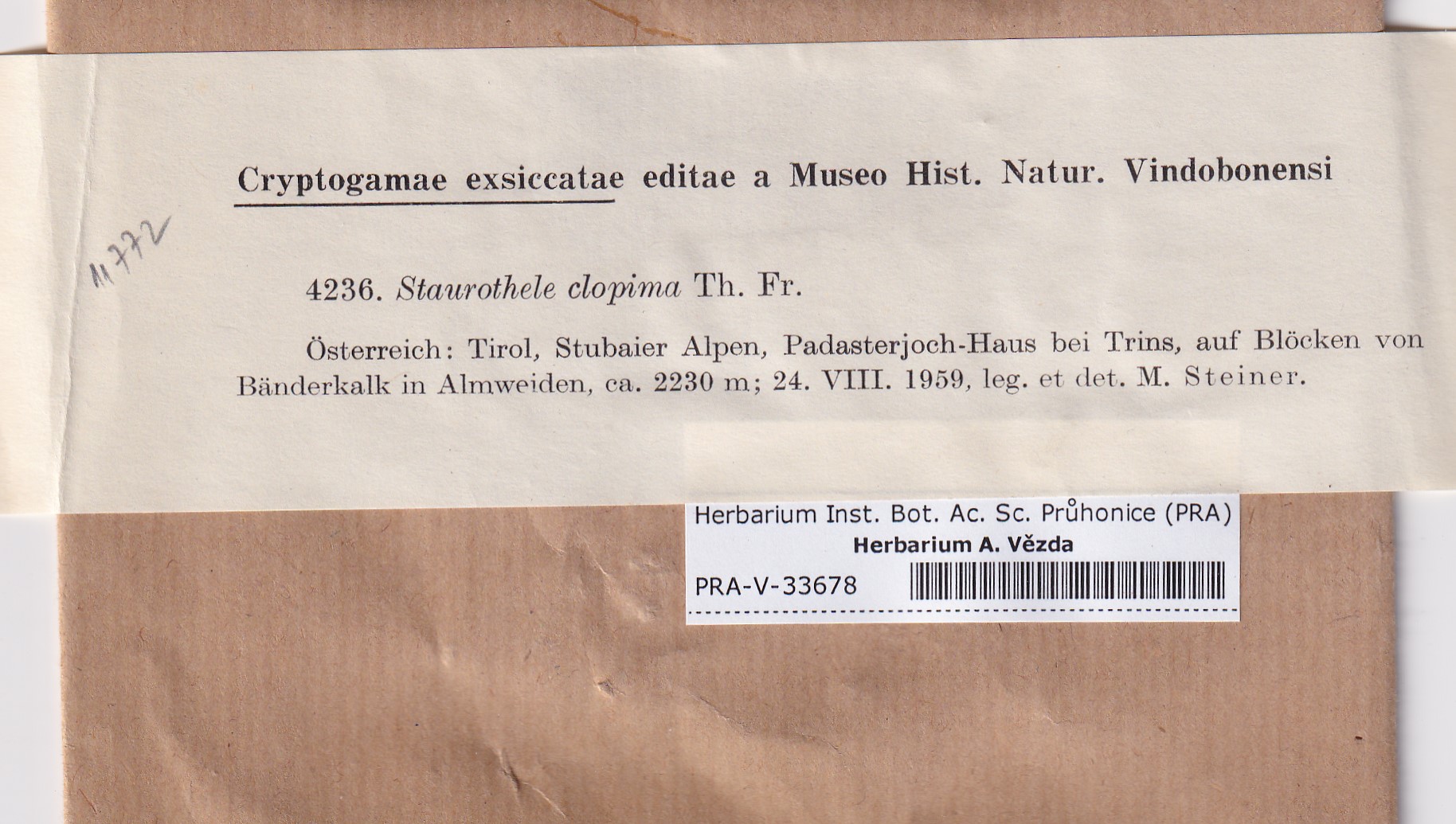 - Deposited in parcel no. 169 Endocarpon, Pyrenothamnia, Staurothele, Trimmatothele