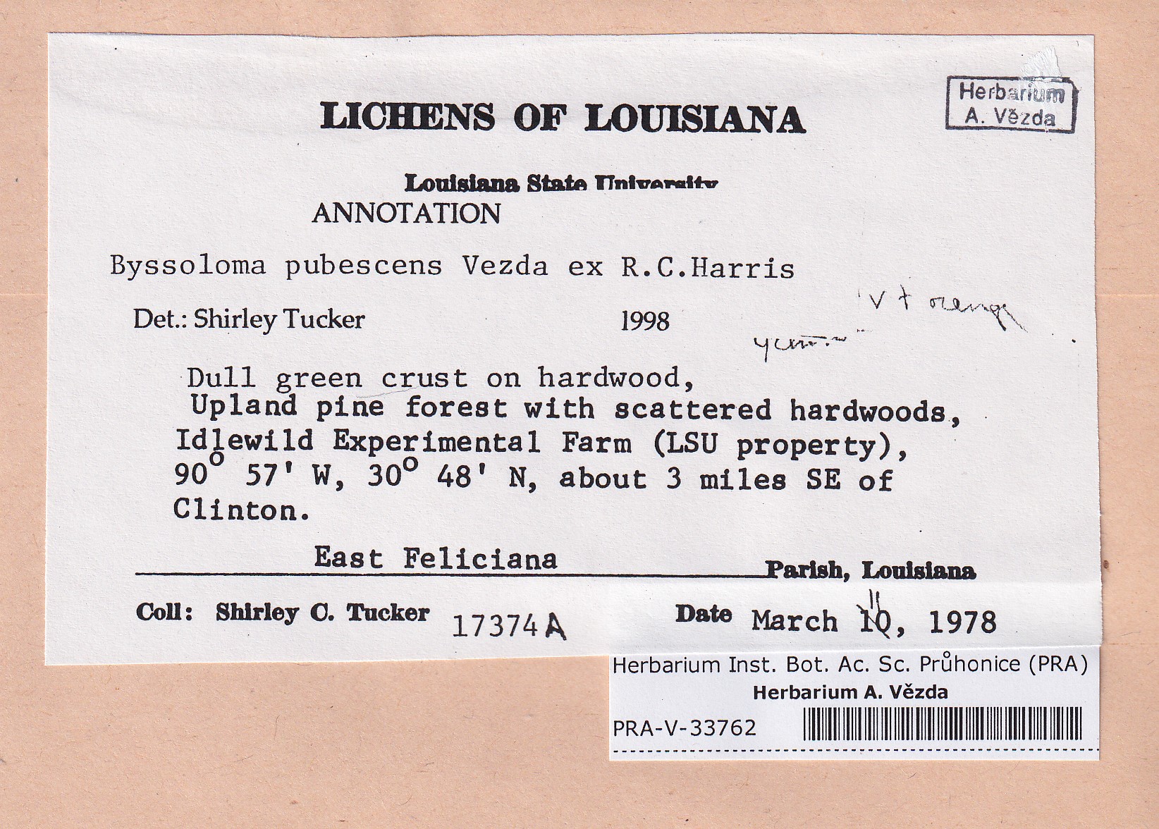 - Deposited in parcel no. 165 Byssoloma, Lecanactis, Schismatomma.