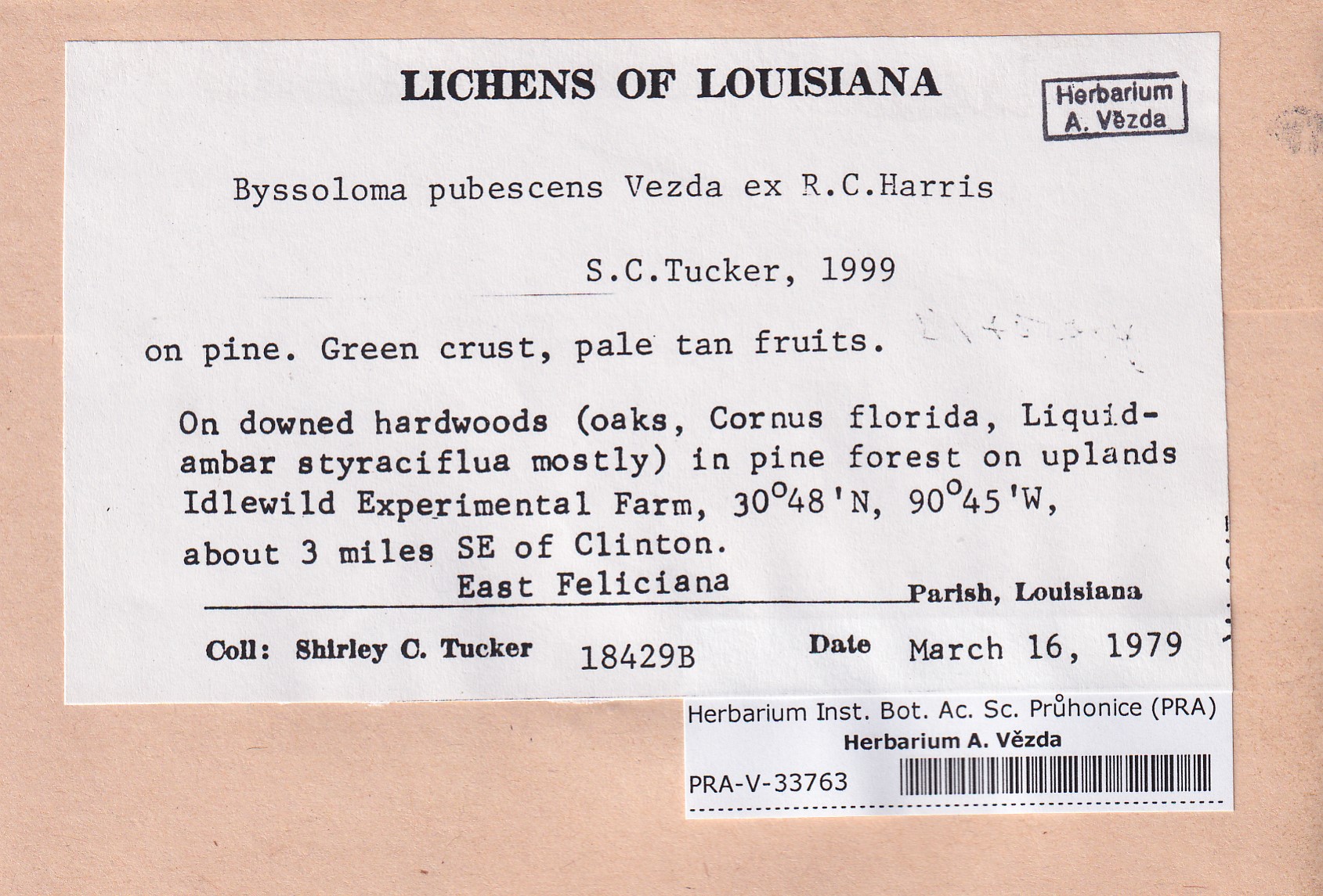 - Deposited in parcel no. 165 Byssoloma, Lecanactis, Schismatomma.