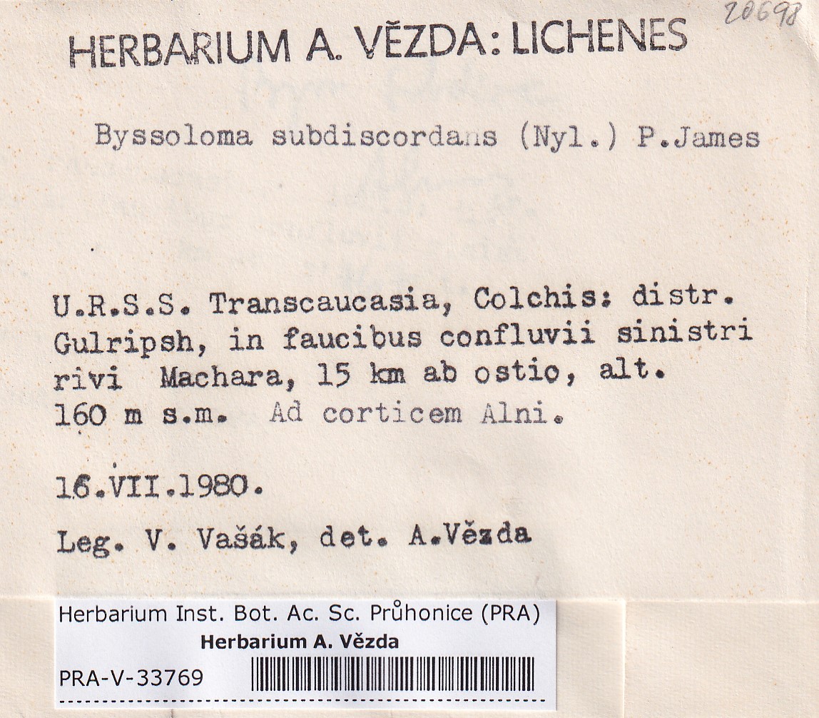 - Deposited in parcel no. 165 Byssoloma, Lecanactis, Schismatomma.
