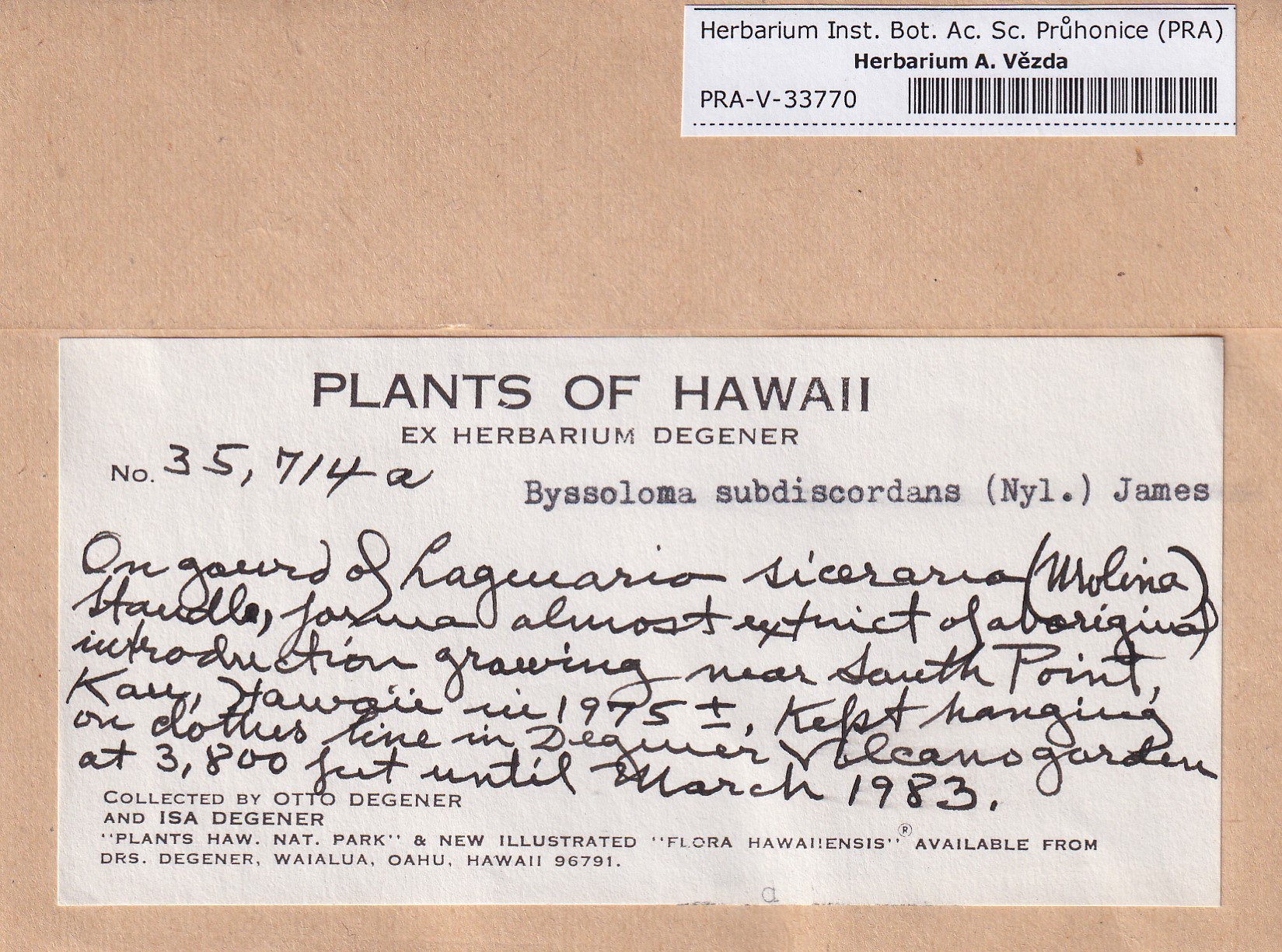 - Deposited in parcel no. 165 Byssoloma, Lecanactis, Schismatomma.