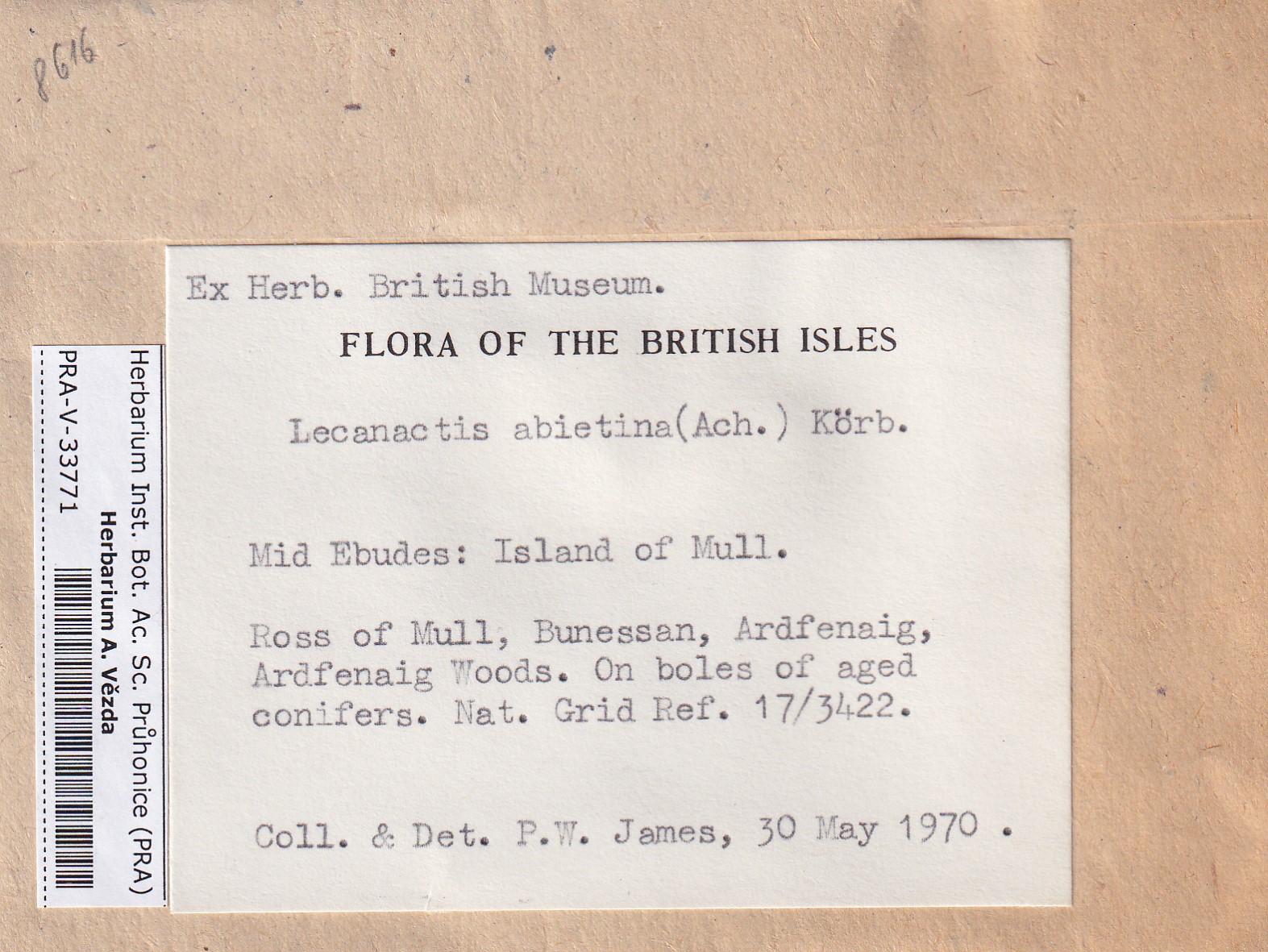 - Deposited in parcel no. 165 Byssoloma, Lecanactis, Schismatomma.