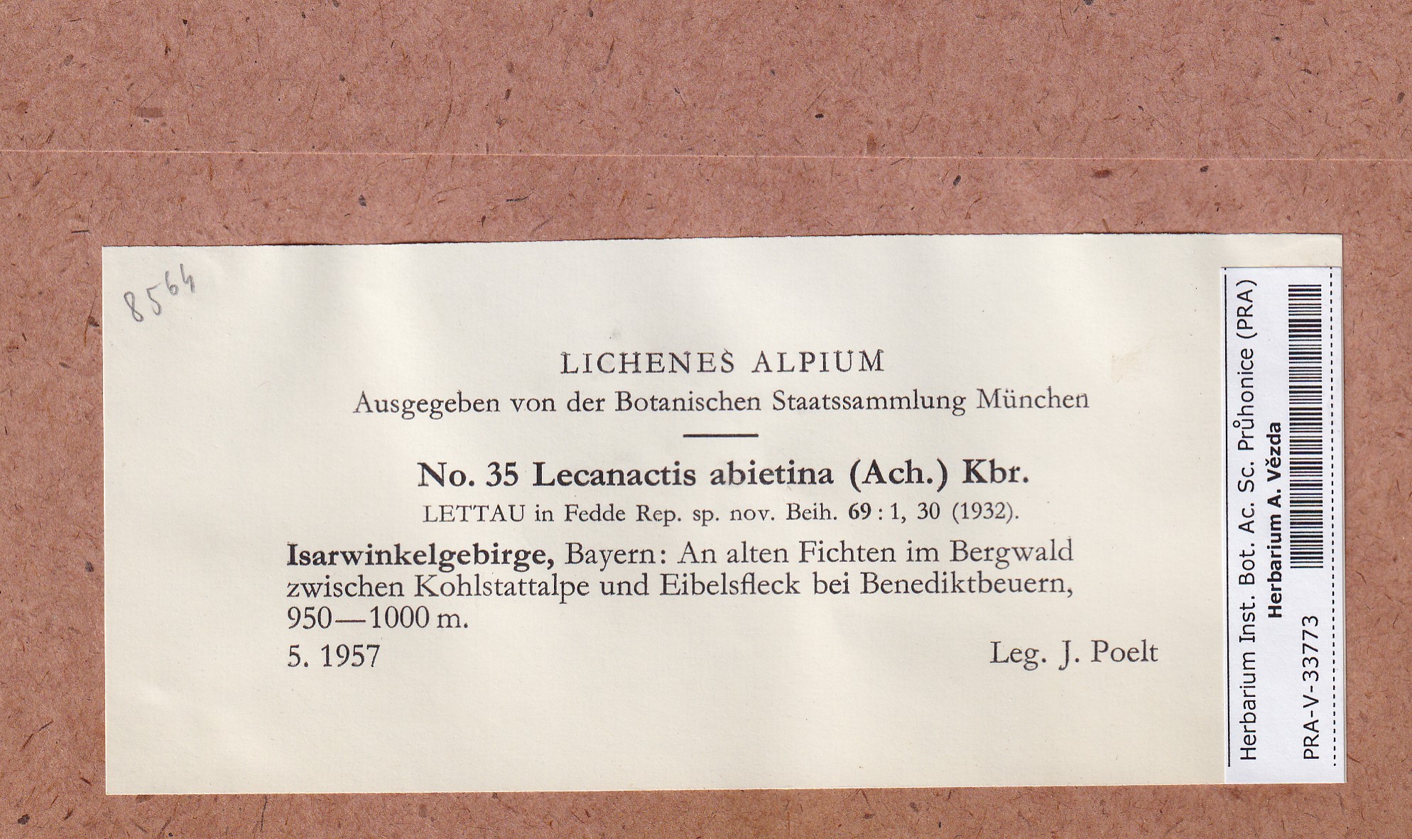- Deposited in parcel no. 165 Byssoloma, Lecanactis, Schismatomma.