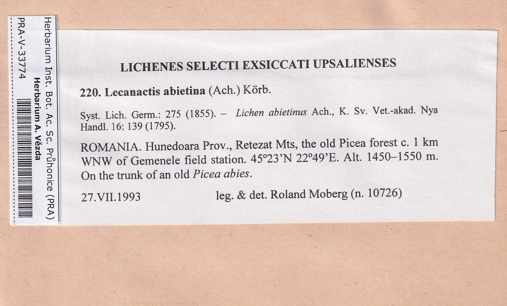 - Deposited in parcel no. 165 Byssoloma, Lecanactis, Schismatomma.