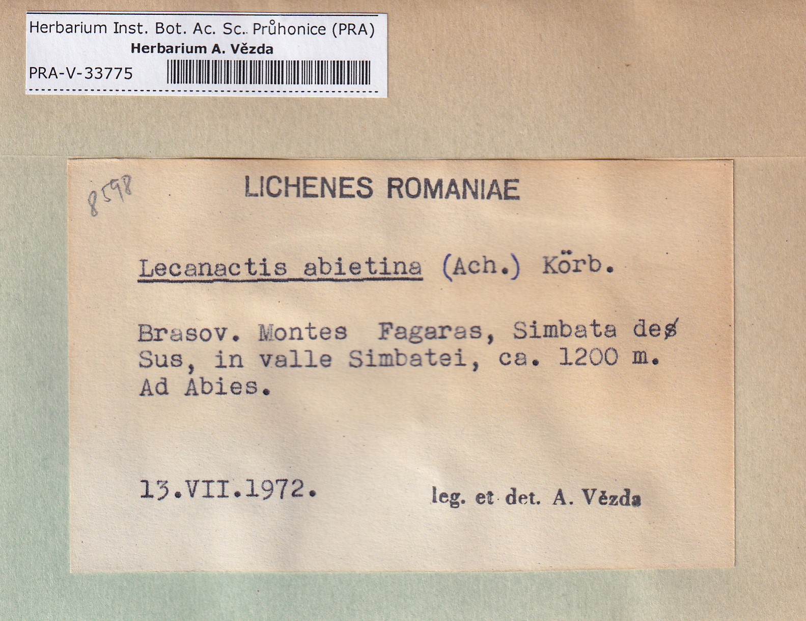 - Deposited in parcel no. 165 Byssoloma, Lecanactis, Schismatomma.