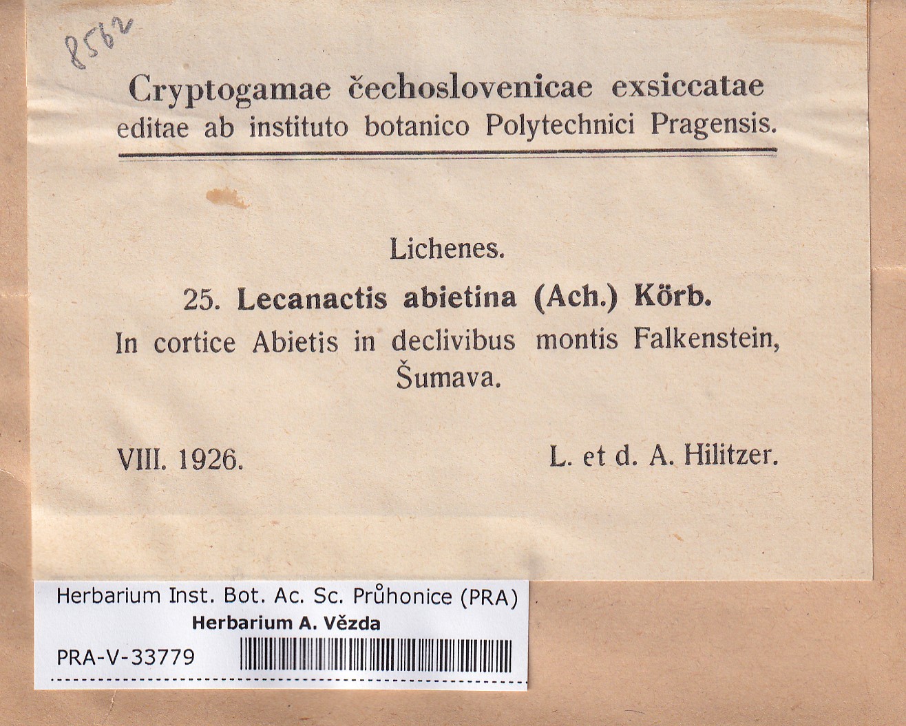 - Deposited in parcel no. 165 Byssoloma, Lecanactis, Schismatomma.