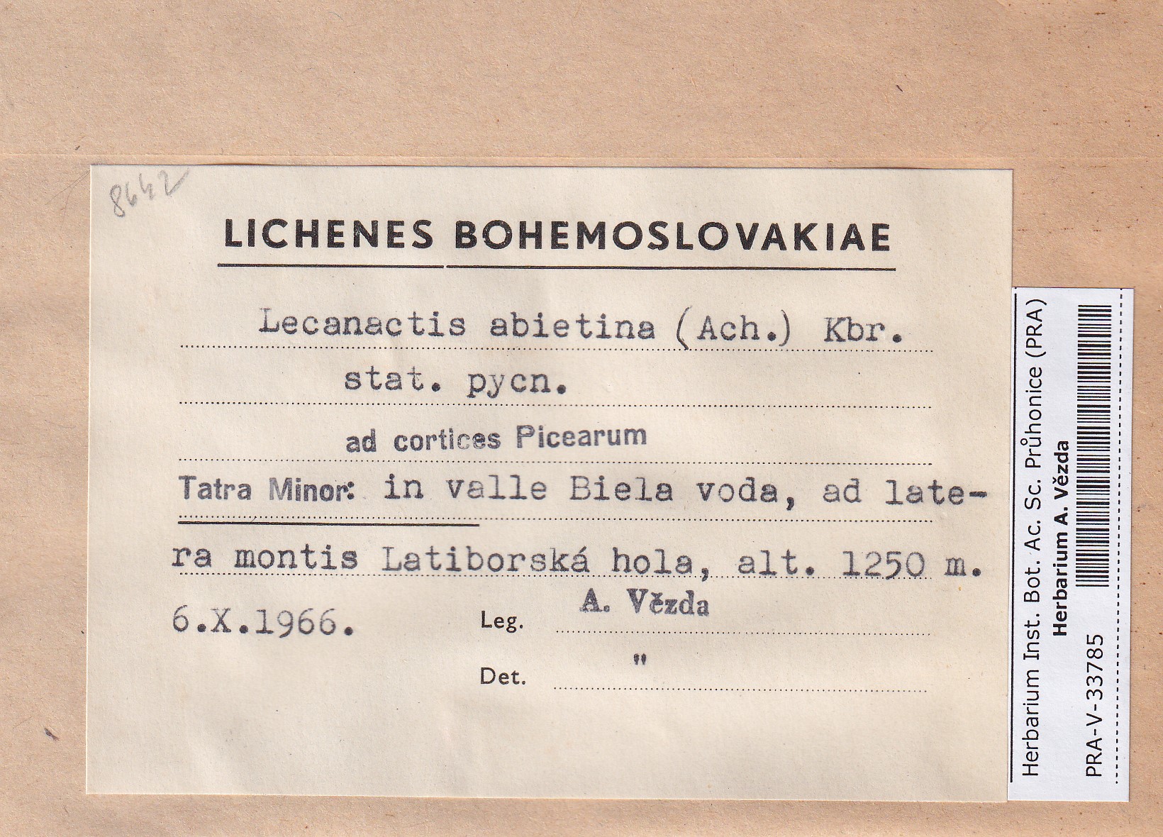 - Deposited in parcel no. 165 Byssoloma, Lecanactis, Schismatomma.