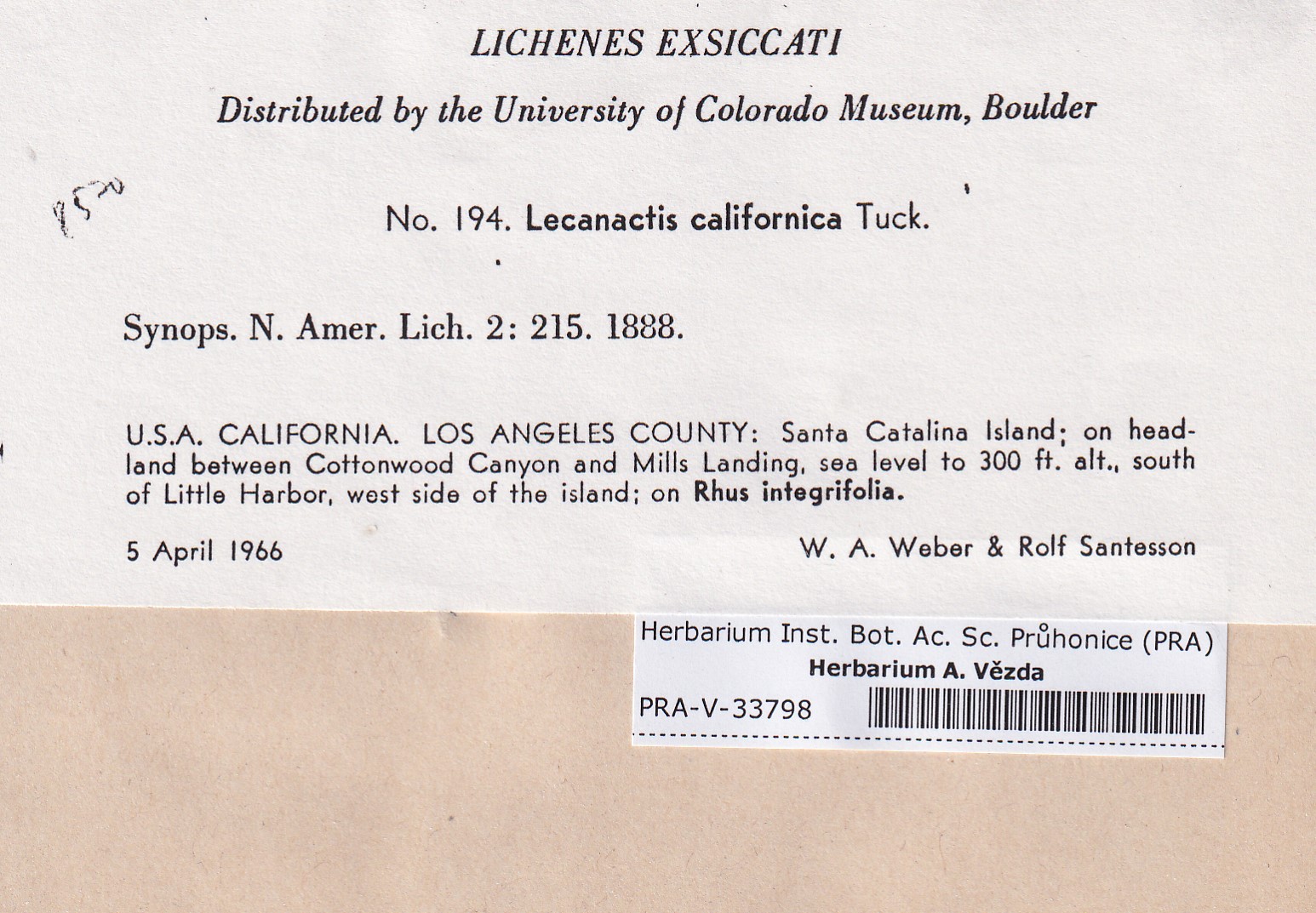 - Deposited in parcel no. 165 Byssoloma, Lecanactis, Schismatomma.