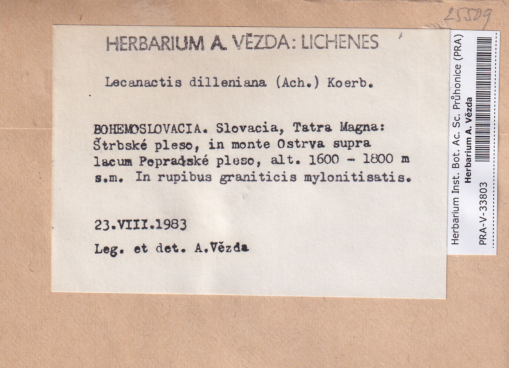 - Deposited in parcel no. 165 Byssoloma, Lecanactis, Schismatomma.