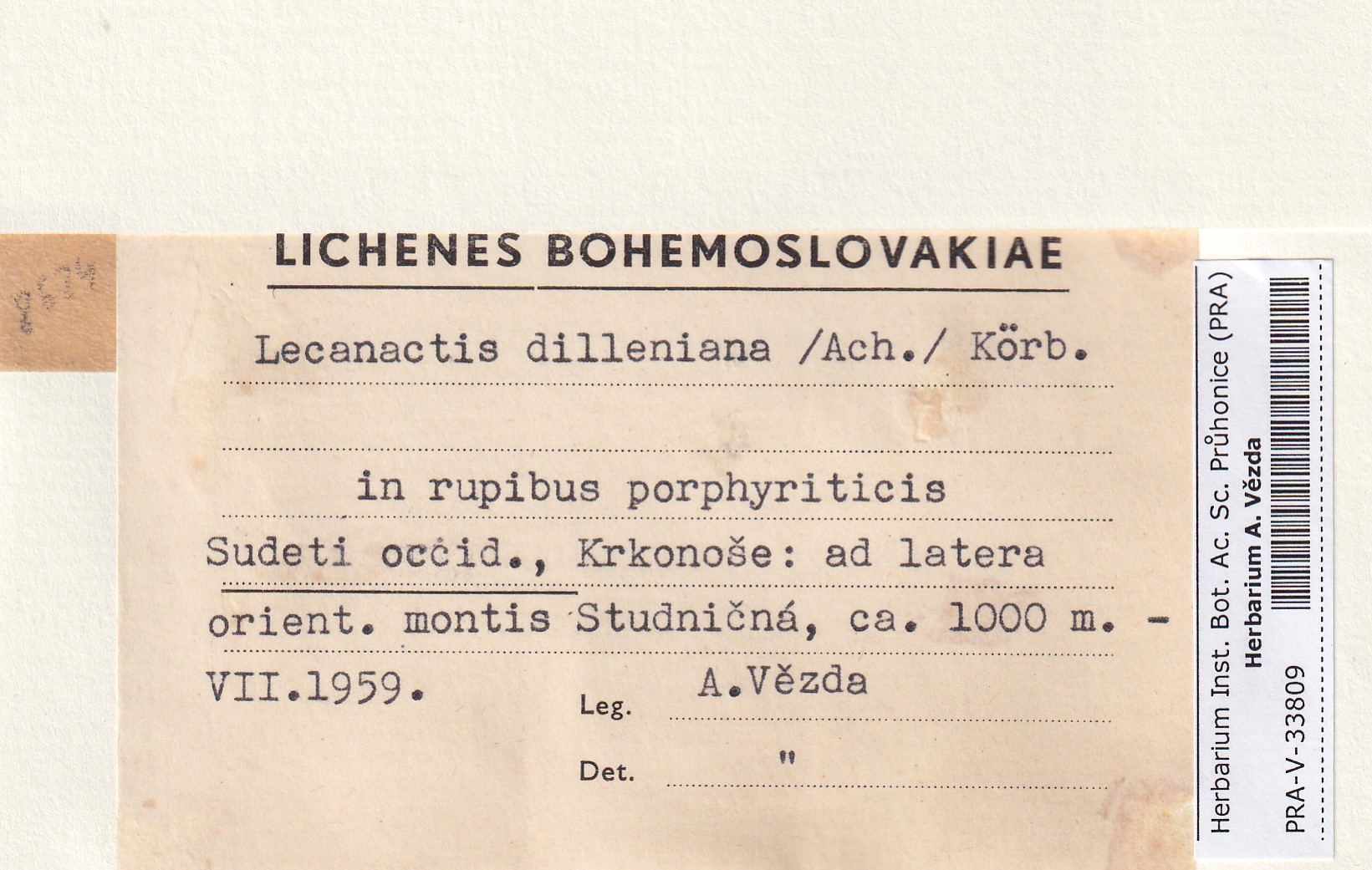 - Deposited in parcel no. 165 Byssoloma, Lecanactis, Schismatomma.