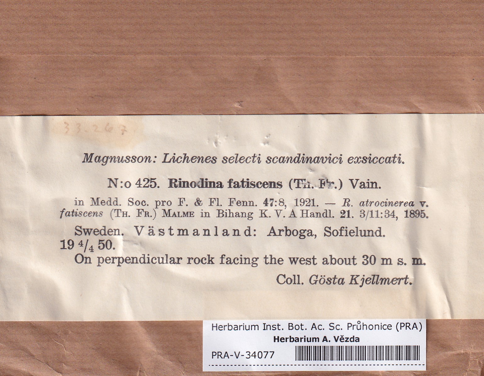 - Deposited in parcel no. 167 Rinodina F-M