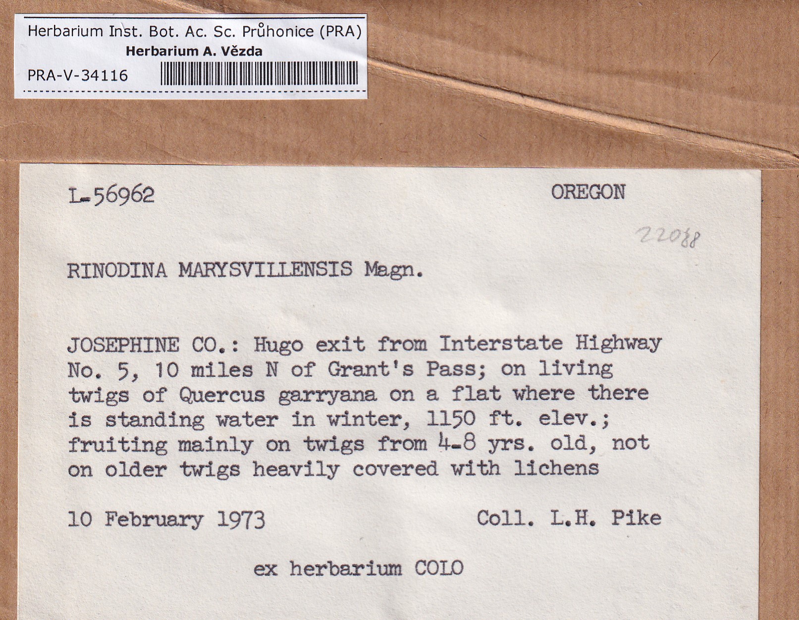 - Deposited in parcel no. 167 Rinodina F-M