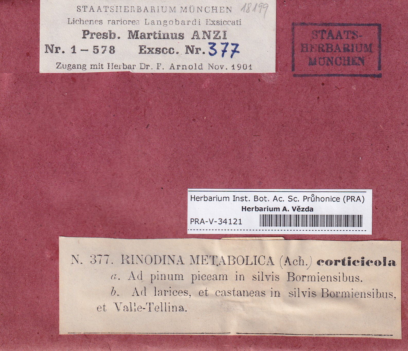 - Deposited in parcel no. 167 Rinodina F-M