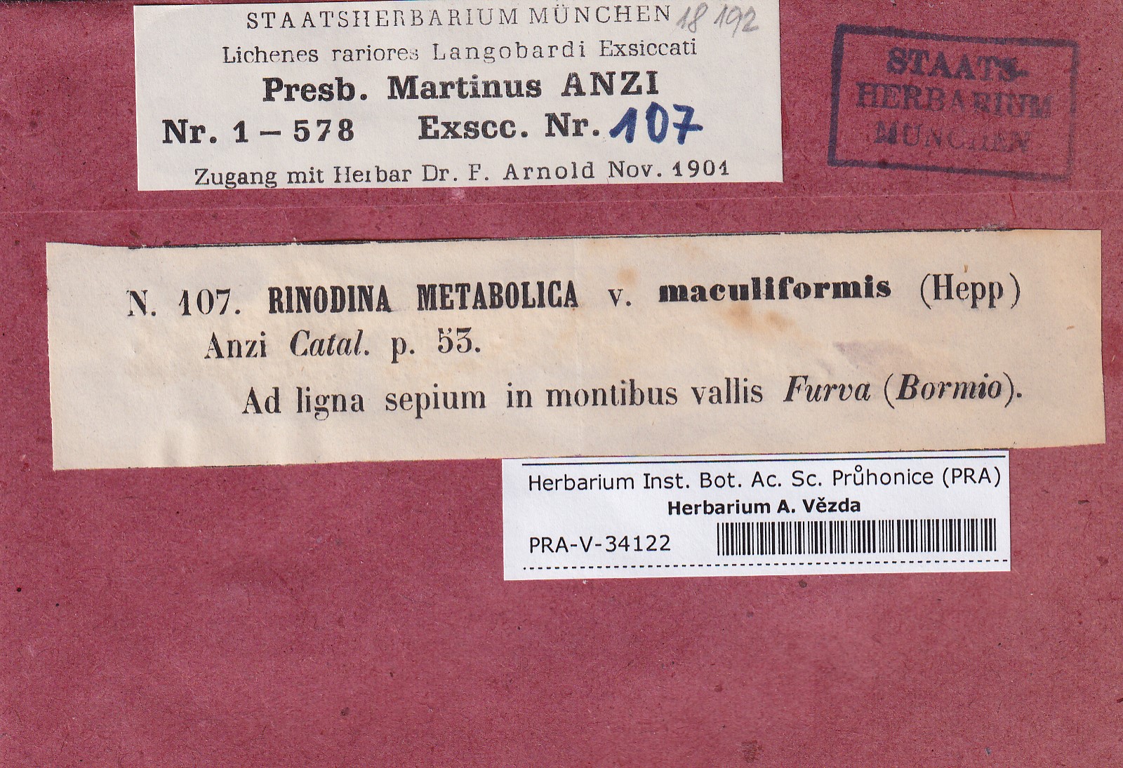 - Deposited in parcel no. 167 Rinodina F-M