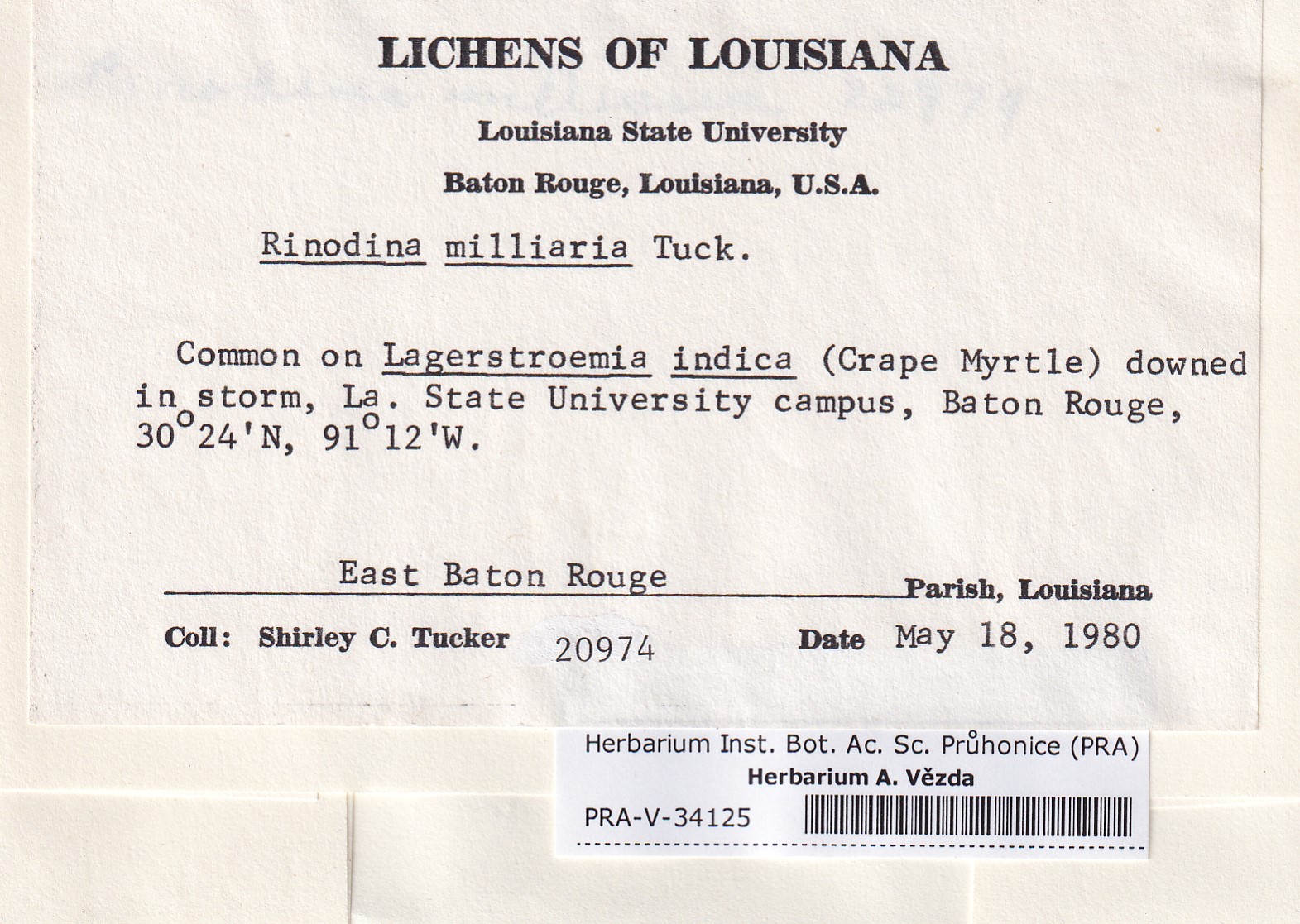 - Deposited in parcel no. 167 Rinodina F-M