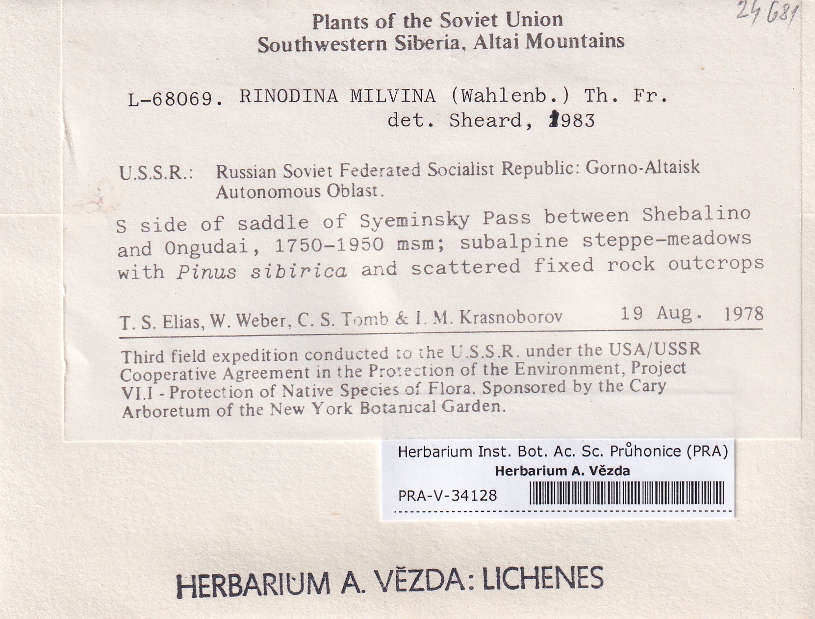 - Deposited in parcel no. 167 Rinodina F-M