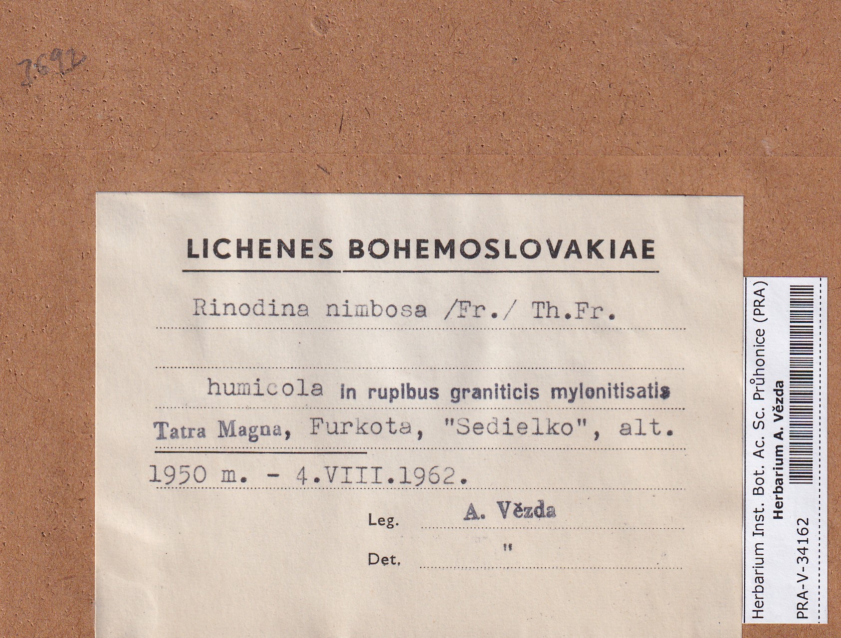 - Deposited in parcel no. 168 Rinodina N-Y-indet.