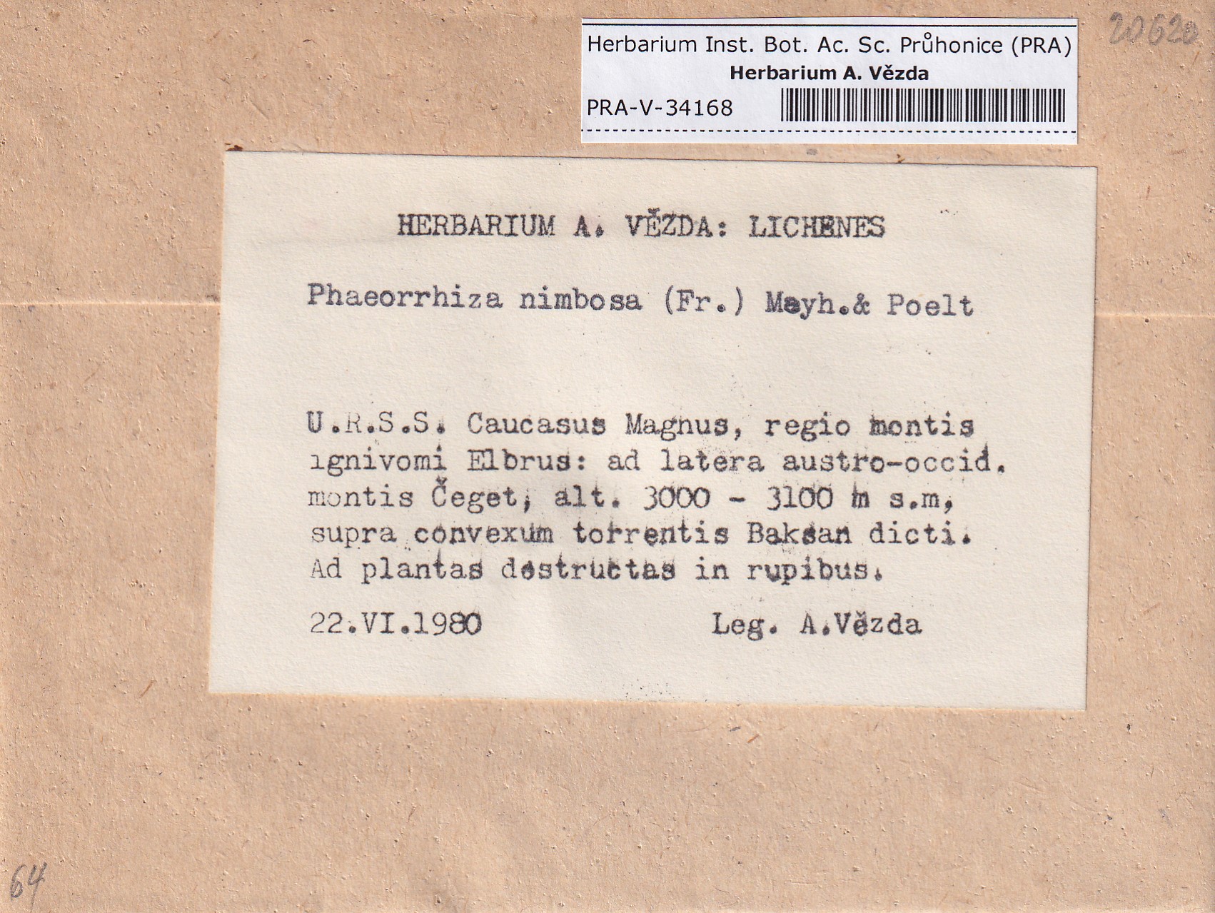 - Deposited in parcel no. 168 Rinodina N-Y-indet.