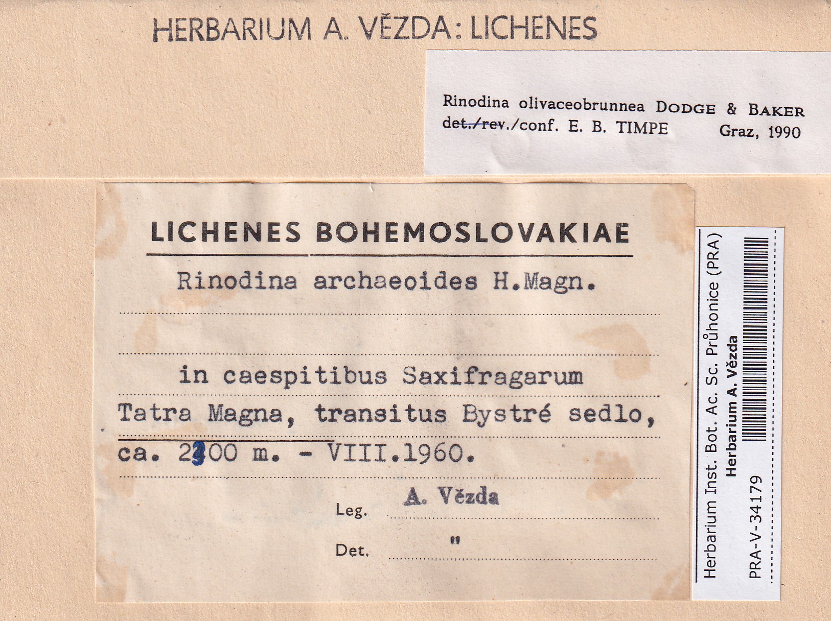 - Deposited in parcel no. 168 Rinodina N-Y-indet.