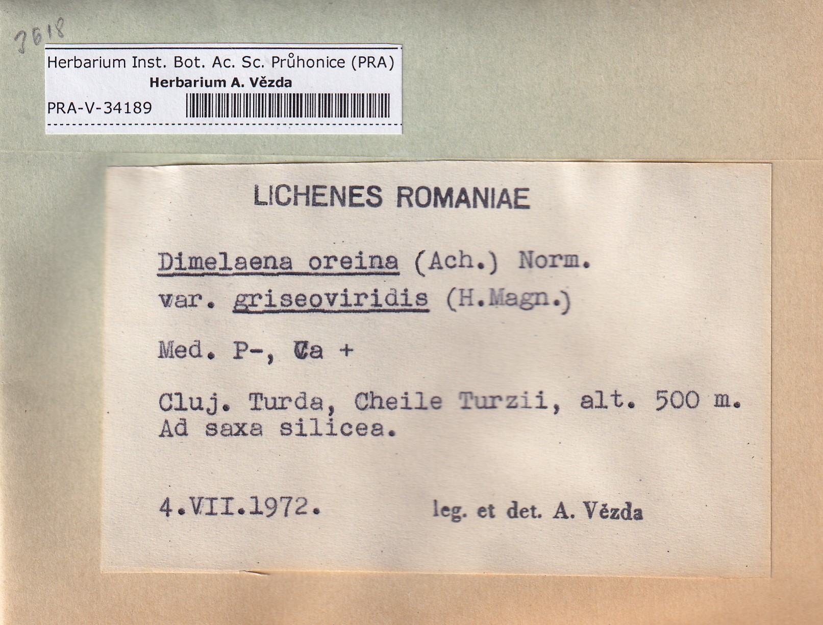 - Deposited in parcel no. 168 Rinodina N-Y-indet.
