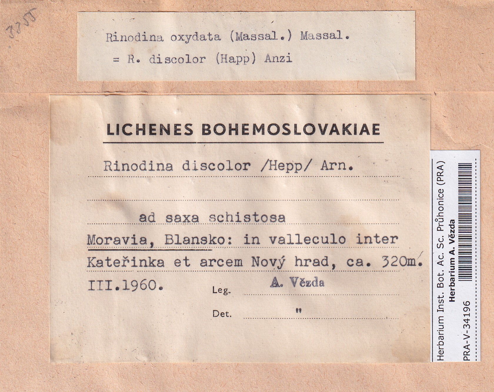 - Deposited in parcel no. 168 Rinodina N-Y-indet.