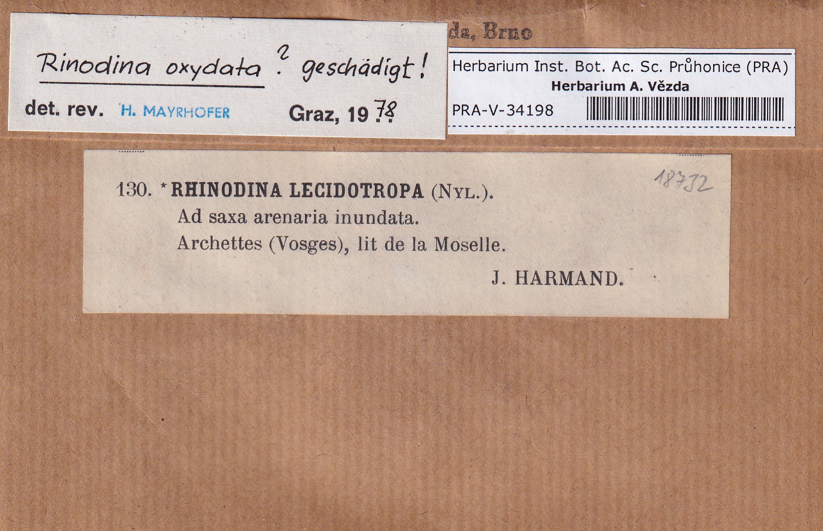 - Deposited in parcel no. 168 Rinodina N-Y-indet.