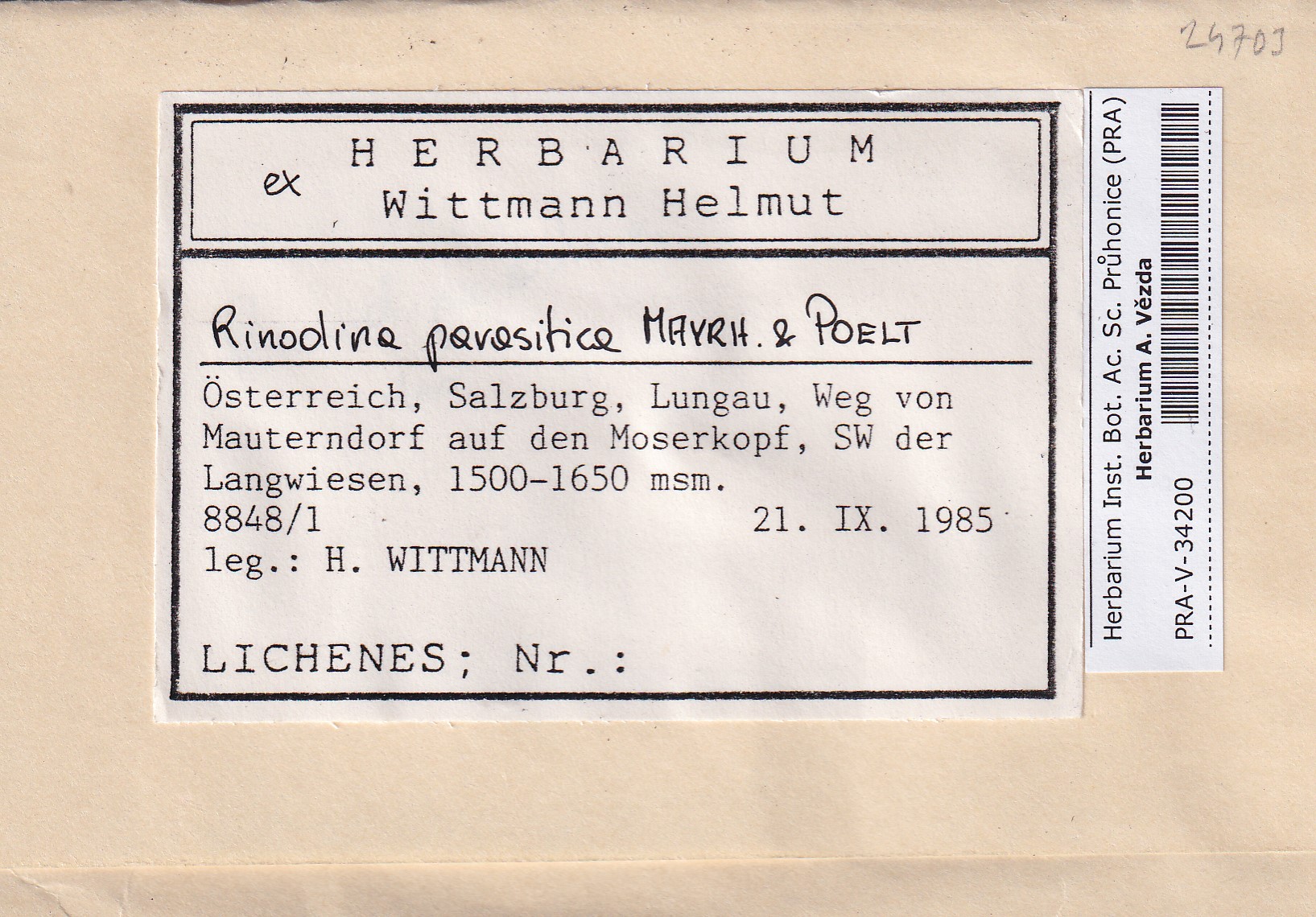 - Deposited in parcel no. 168 Rinodina N-Y-indet.