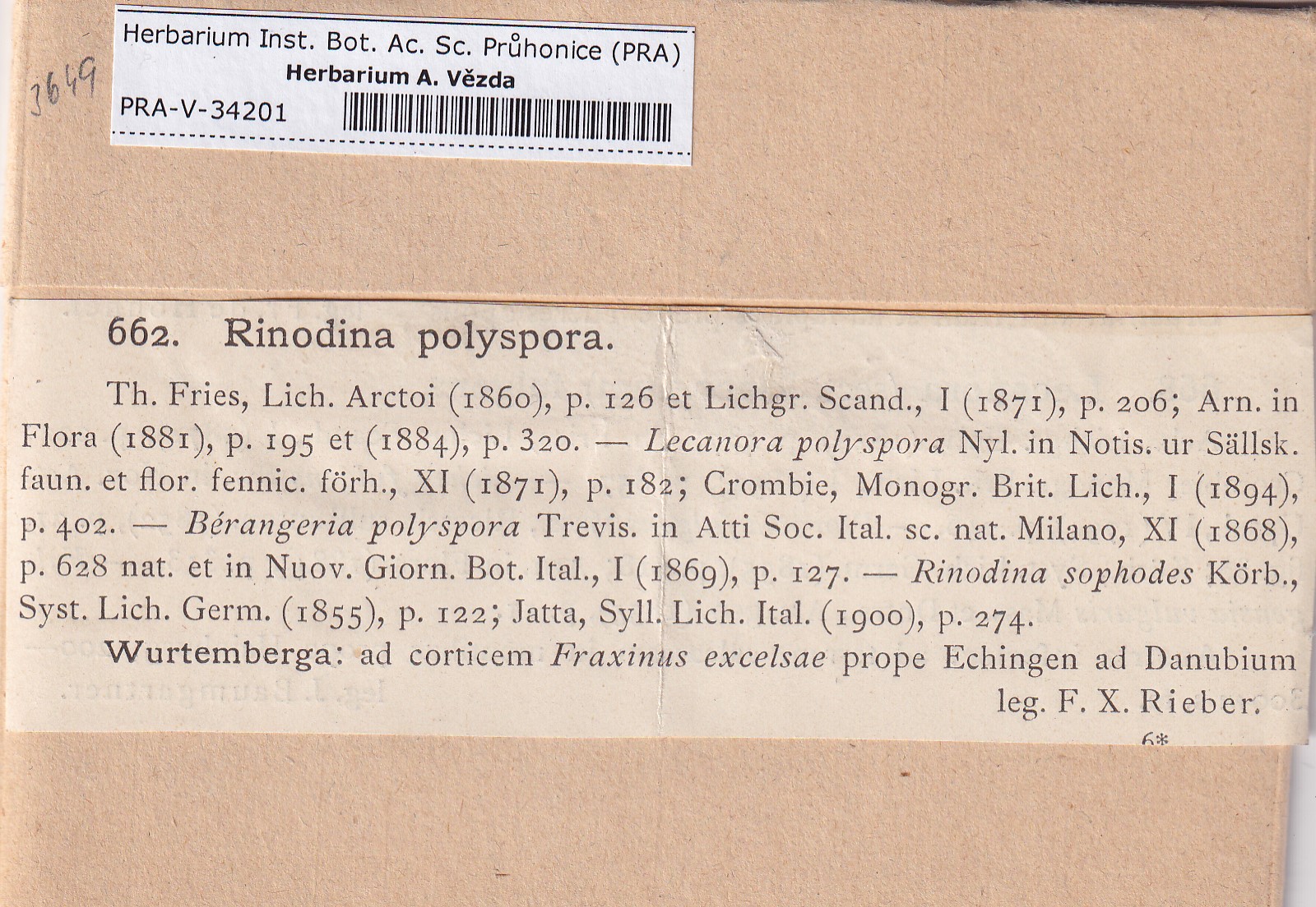 - Deposited in parcel no. 168 Rinodina N-Y-indet.