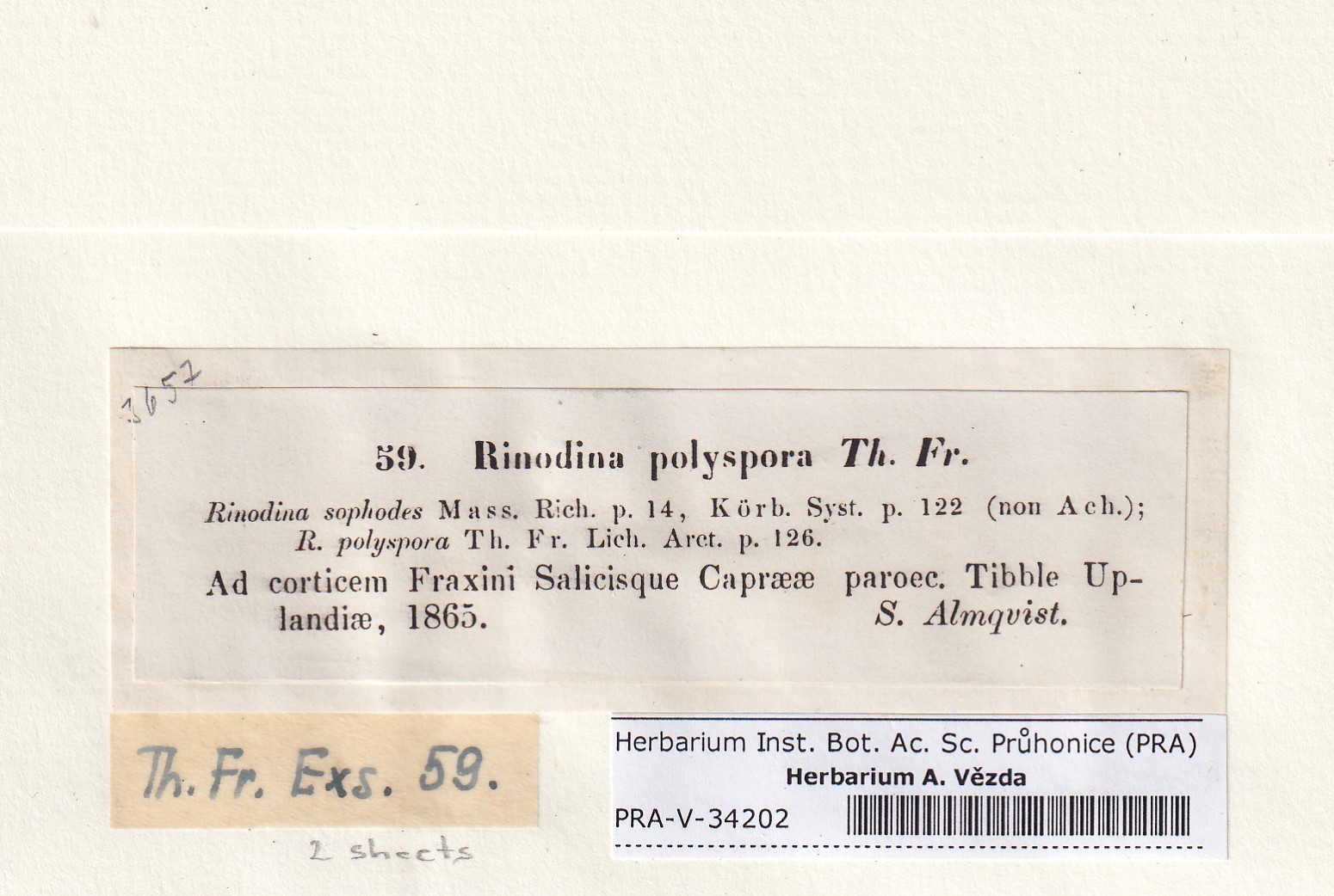 - Deposited in parcel no. 168 Rinodina N-Y-indet.