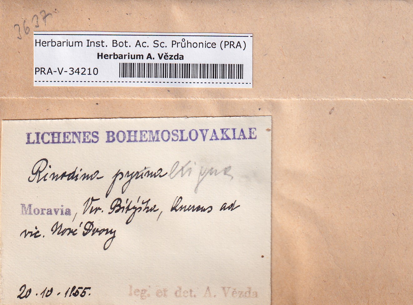- Deposited in parcel no. 168 Rinodina N-Y-indet.