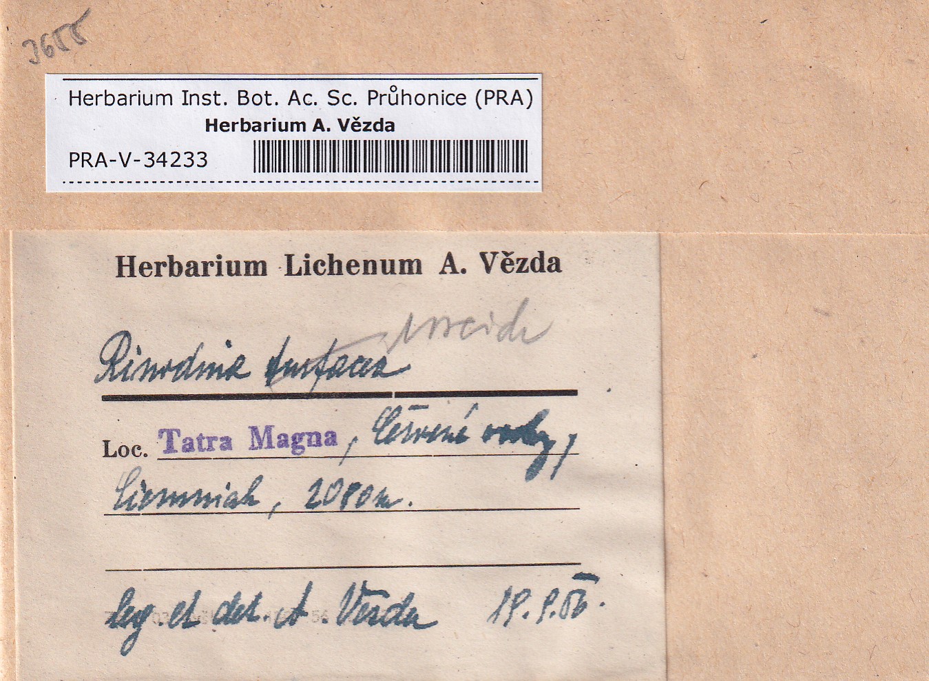 - Deposited in parcel no. 168 Rinodina N-Y-indet.