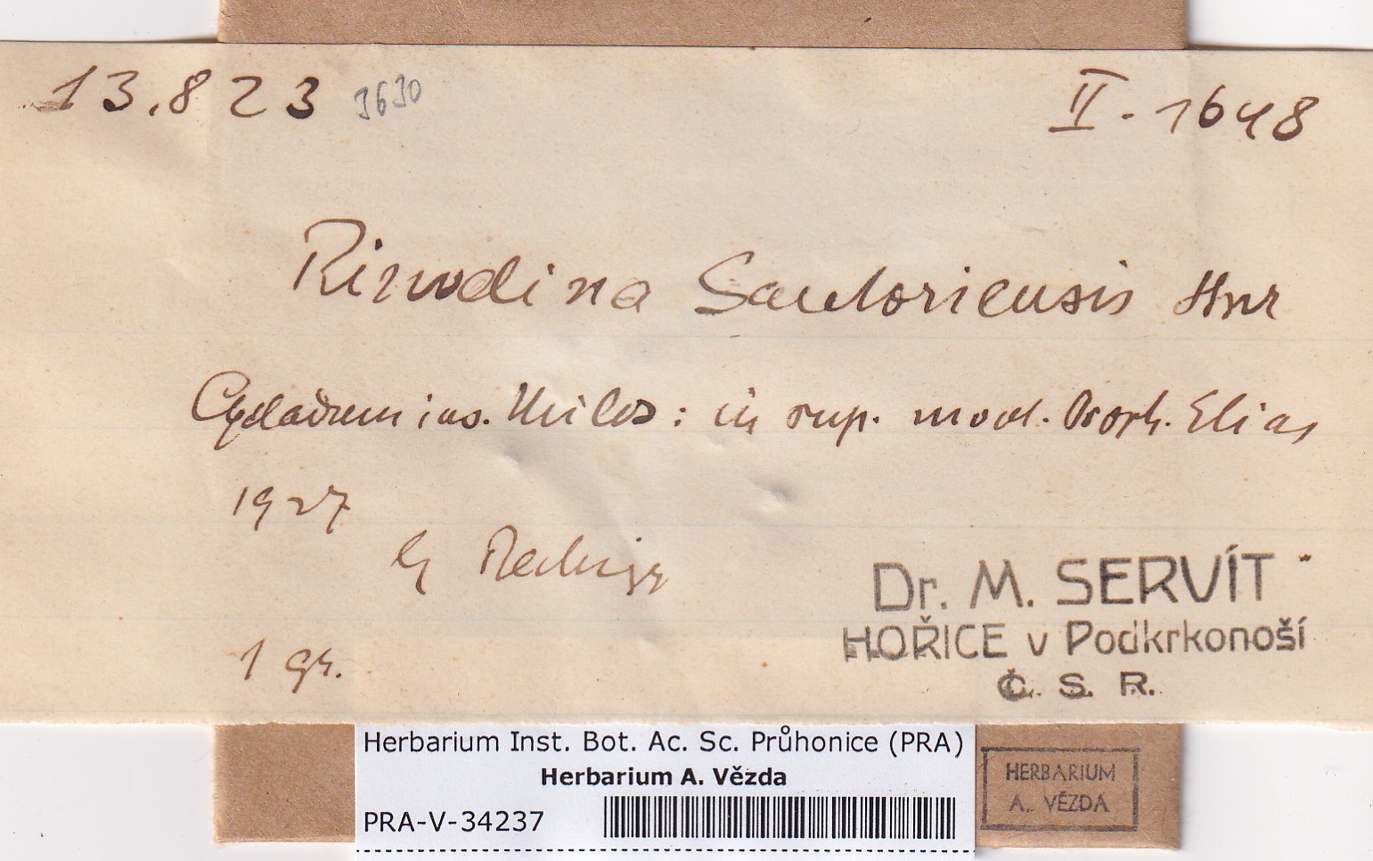 - Deposited in parcel no. 168 Rinodina N-Y-indet.