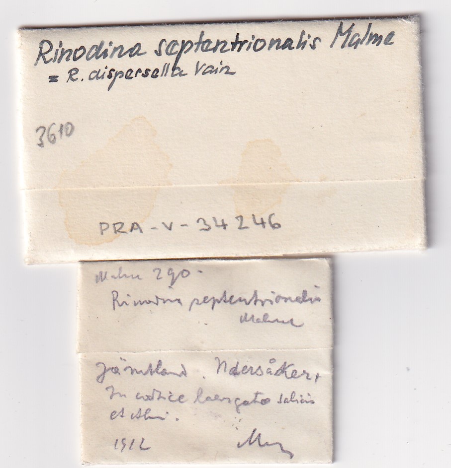 - Deposited in parcel no. 168 Rinodina N-Y-indet.