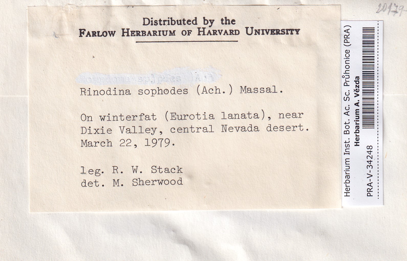 - Deposited in parcel no. 168 Rinodina N-Y-indet.