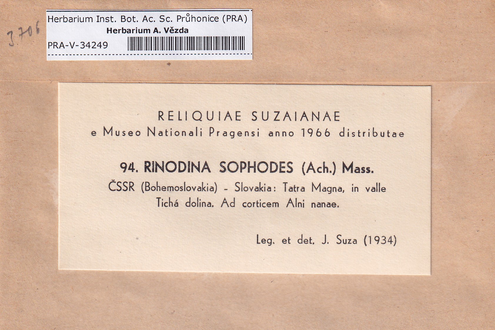 - Deposited in parcel no. 168 Rinodina N-Y-indet.