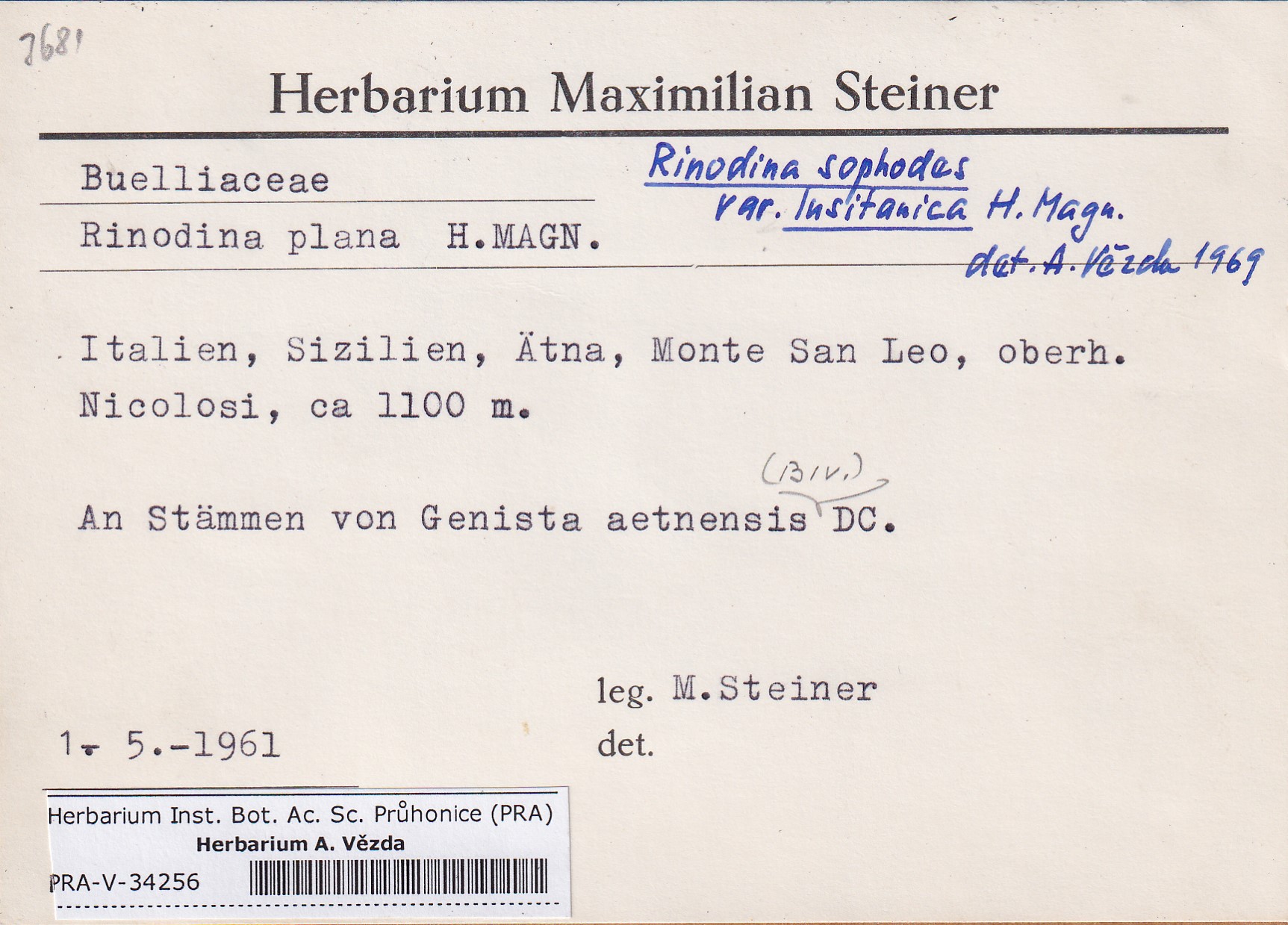- Deposited in parcel no. 168 Rinodina N-Y-indet.