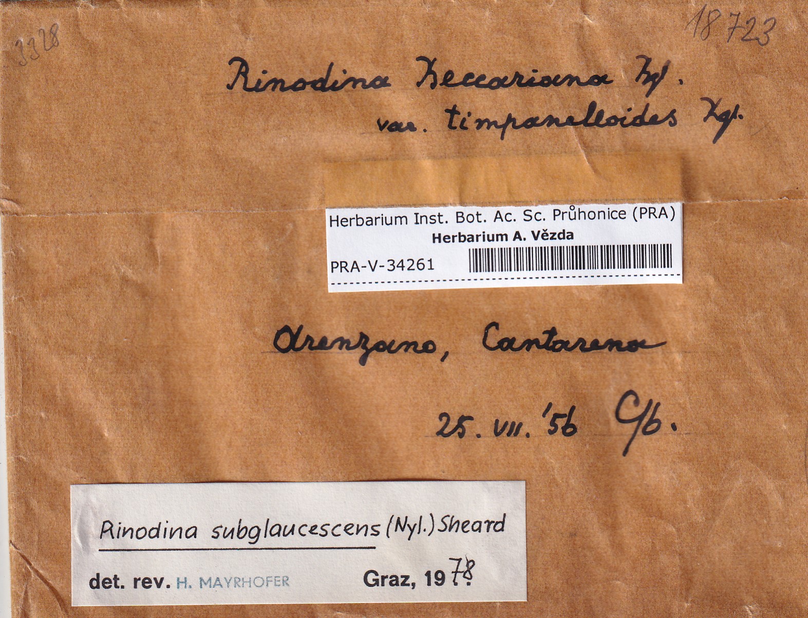 - Deposited in parcel no. 168 Rinodina N-Y-indet.