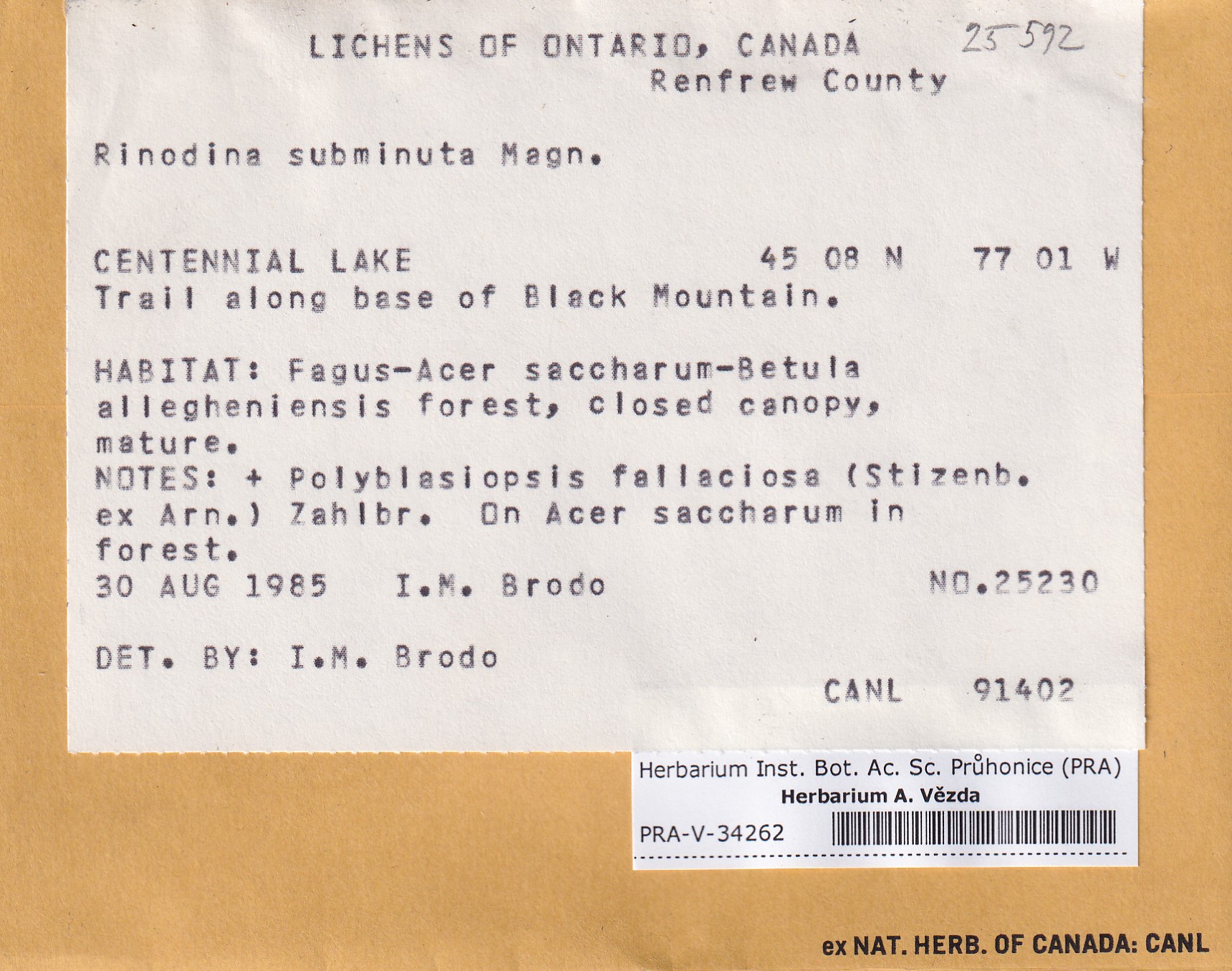 - Deposited in parcel no. 168 Rinodina N-Y-indet.