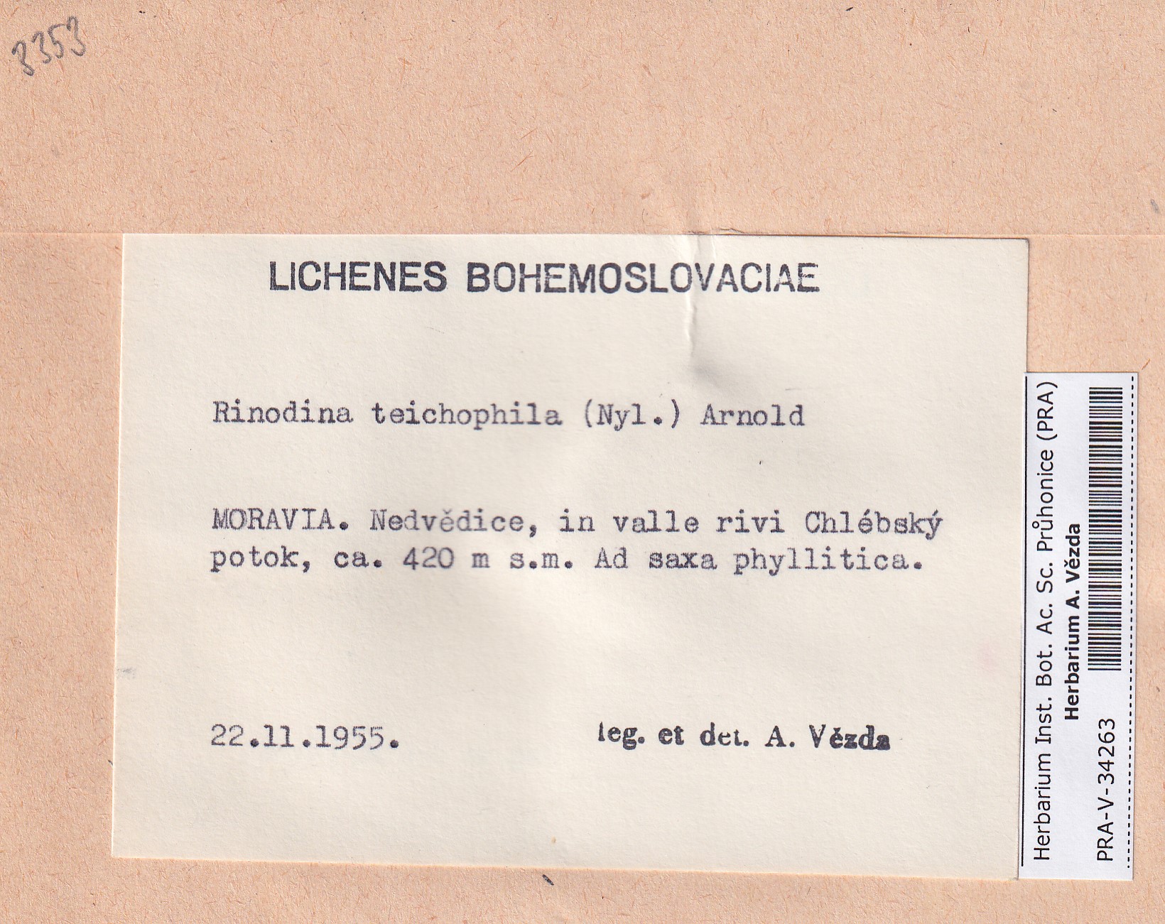 - Deposited in parcel no. 168 Rinodina N-Y-indet.
