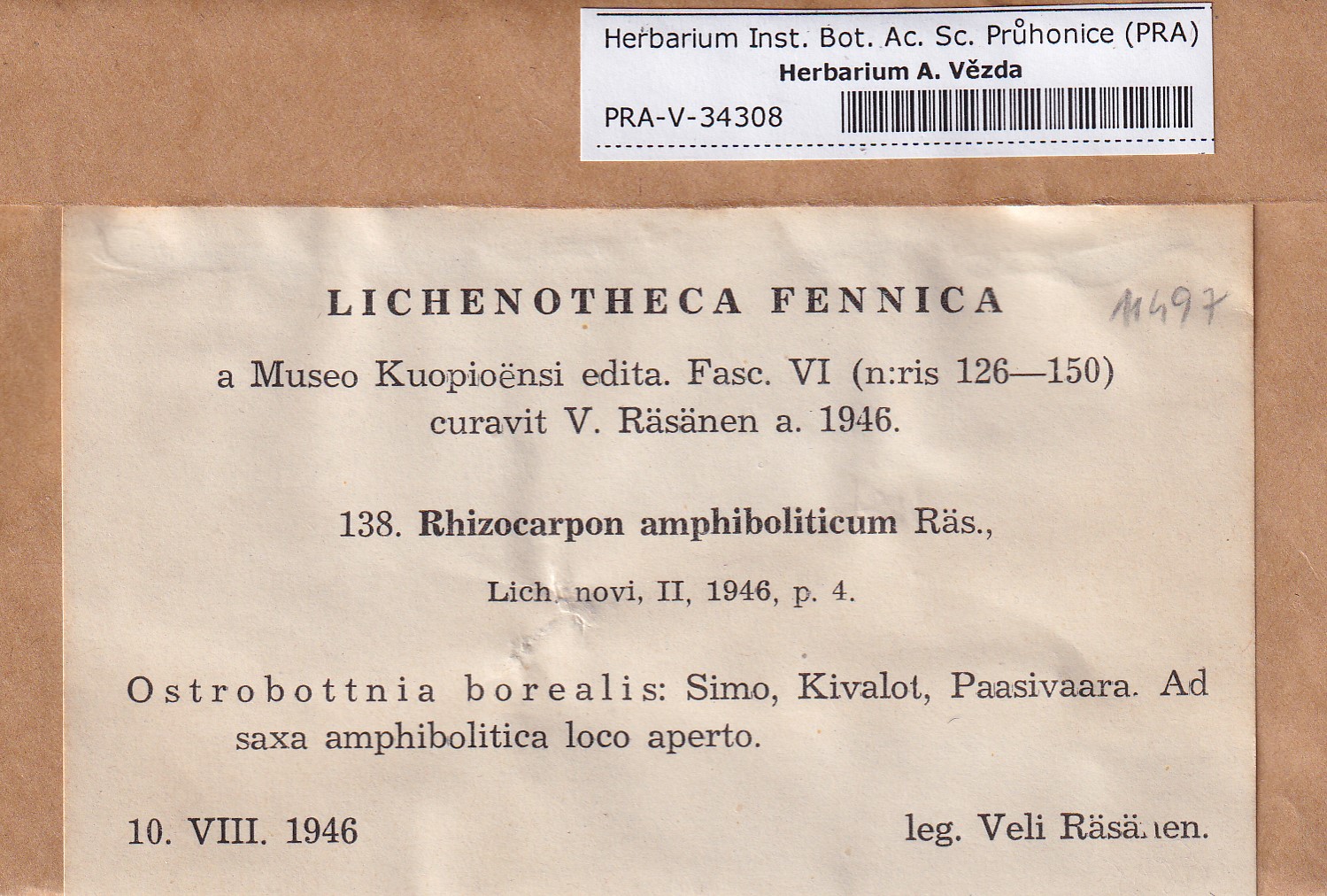 - Deposited in parcel no. 171 Rhizocarpon A-F