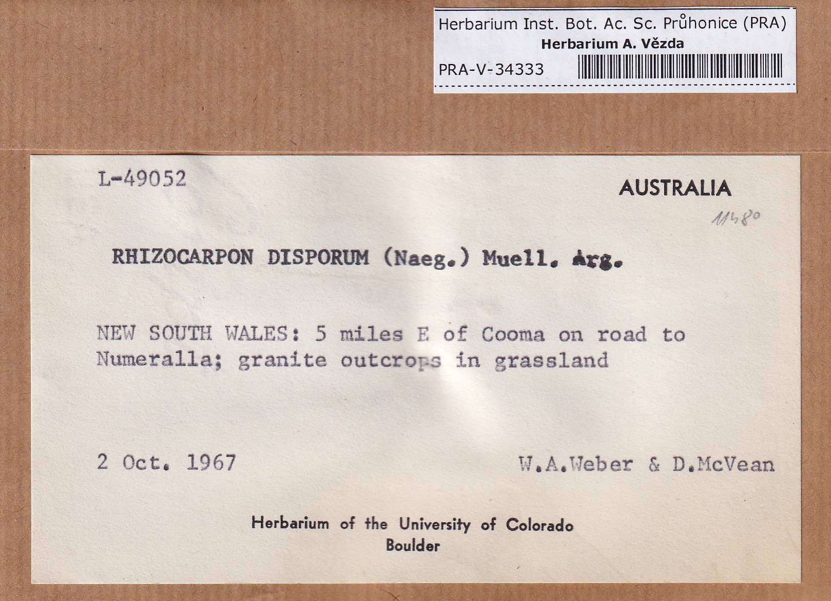 - Deposited in parcel no. 171 Rhizocarpon A-F