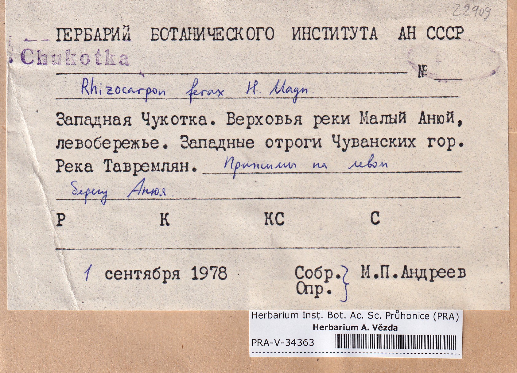 - Deposited in parcel no. 171 Rhizocarpon A-F